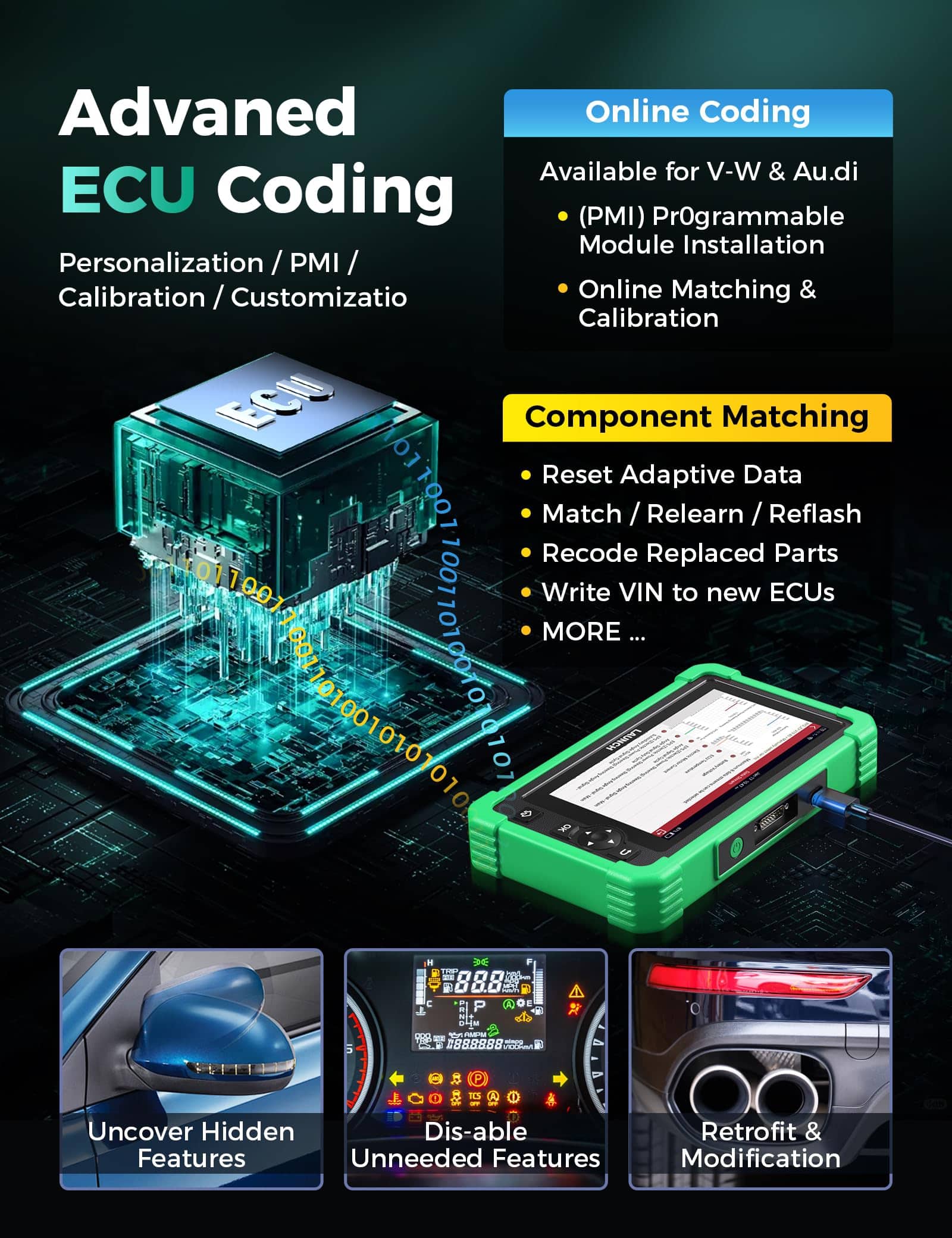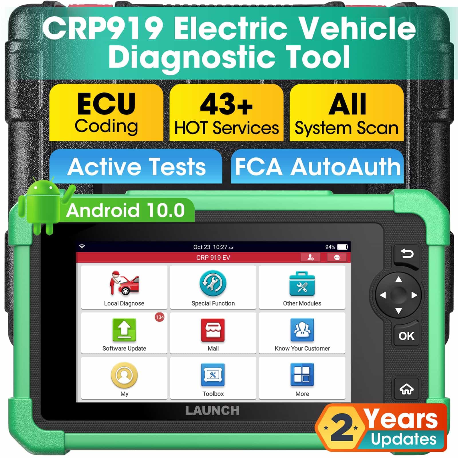 El LAUNCH X431 CRP919EV es un escáner de diagnóstico de sistema completo todo en uno para vehículos eléctricos y vehículos de nueva energía. Con características mejoradas como compatibilidad con protocolos CANFD y DoIP, acceso a vehículos FCA SGW equipados, codificación avanzada de ECU, pruebas activas bidireccionales y más de 43 servicios calientes para 120+ marcas, este escáner está diseñado para mantenerte preparado para las reparaciones más desafiantes y al día con los últimos vehículos. Además, ofrece diagnósticos de nivel OE en todos los sistemas del vehículo, lo que te permite leer / borrar DTCs, monitorear datos de PIDs en tiempo real, grabar y reproducir datos, y más. Con funciones actualizadas como navegador incorporado, interfaz optimizada para visualizar hasta 8 PIDs en una sola pantalla, exportación de datos en archivos CSV y compartir informes con la PC, el CRP919EV te brinda eficiencia y precisión en tu taller.