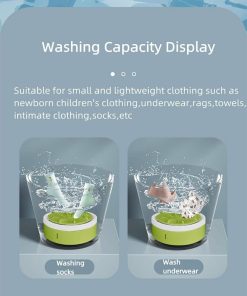 Nombre: Lavadora Turbo Material: ABS Alimentación: enchufe de corriente Colores: gris, verde, naranja, morado Voltaje de entrada: 5V Corriente de entrada: 2A Potencia nominal: 27W Tamaño: 4.7 x 4.47 x 2.7 pulgadas Características: Rueda espiral simulada para lavado a mano, limpieza de 360 grados, adecuada para eliminar manchas difíciles. Perfecto para prendas pequeñas como calcetines, ropa interior, toallas, etc. Compacta y ligera, ideal para viajes.