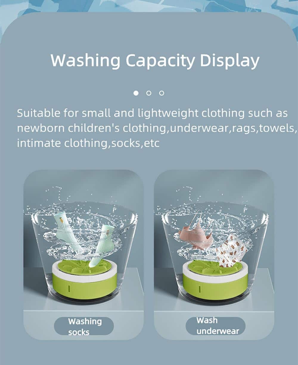 1. Movimiento de alta calidad: La lavadora está hecha de material ABS de alta calidad, equipada con un motor de cobre puro que proporciona un lavado potente.
