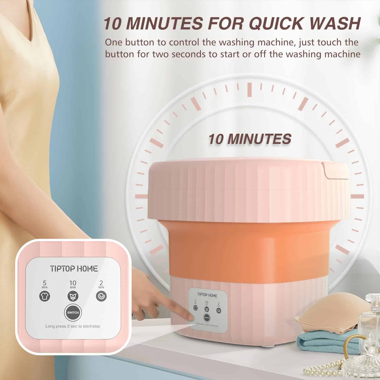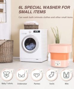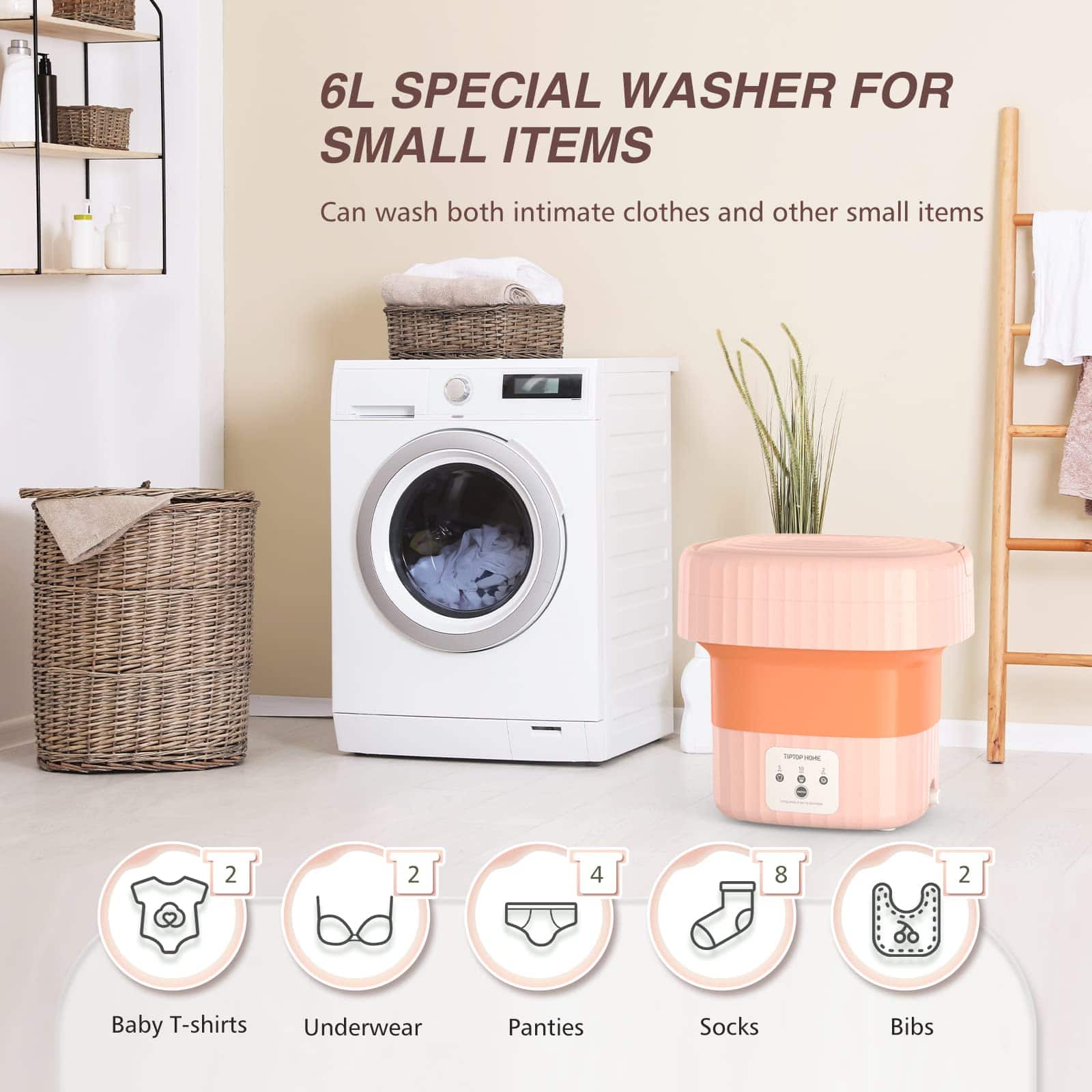 Nos enfocamos en la segunda clasificación de la familia. Lavadora portátil, ideal para ropa de bebé, ropa interior o artículos pequeños. La mejor elección: ahorro de tiempo y espacio. Solo toma alrededor de 10 minutos lavar el artículo, y el diseño plegable puede reducir el espacio de almacenamiento. Fácil de usar: solo un botón de toque para controlar la lavadora. Fácil de transportar: la lavadora portátil es ligera y conveniente, puedes llevarla de camping o de viaje. Gran regalo: la lavadora pequeña será un regalo increíble para las personas que aman la limpieza, viajan con frecuencia, viven en escuela y familias con bebés, mascotas y pacientes. Consejos importantes: 1. Esta mini lavadora se usa para lavar algunos artículos pequeños y delicados. Por favor, no pongas artículos pesados como suéteres y sábanas. 2. Asegúrate de mantener el panel táctil seco al usar la lavadora. Si el panel táctil está mojado, la operación será insensible. 3. La lavadora mini no puede drenar automáticamente. Debes abrir el desagüe para drenar después de lavar. Recuerda cerrar el desagüe después de drenar el agua. Especificaciones: Voltaje: 110-240V. Potencia: 10W. Tensión de salida: DC12V. Tiempo de lavado: 2/5/10 minutos. Lista de paquetes: Lavadora Plegable 1. Adaptador 1. Manual de Usuario 1.
