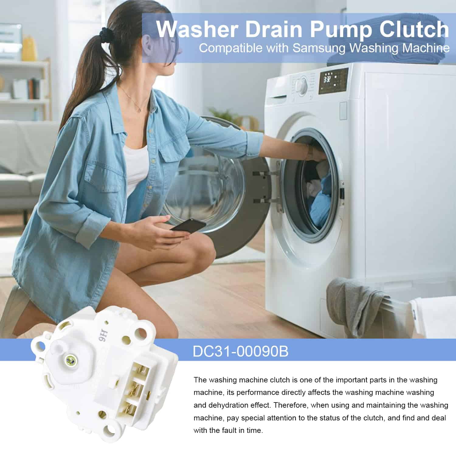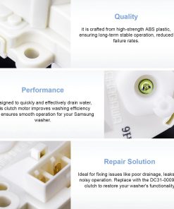 4. Solución de reparación: Ideal para solucionar problemas como drenaje deficiente, fugas u operación ruidosa. Reemplace con el embrague DC31-00090B para restaurar la funcionalidad de su lavadora.