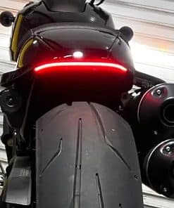 Diseñado para reemplazar el guardabarros de stock y el conjunto de luces traseras, cuenta con una sola carcasa LED compacta que pone en exhibición un resplandor rojo nítido. El diseño sin costuras fluye limpiamente detrás de la llanta trasera, eliminando el exceso de plástico para un aspecto personalizado despojado. está construido para resistir la vibración y el clima. Con su forma minimalista e iluminación brillante, esta luz trasera seguramente llamará la atención ya sea que estés paseando por el centro de la ciudad o arrasando en carreteras secundarias.