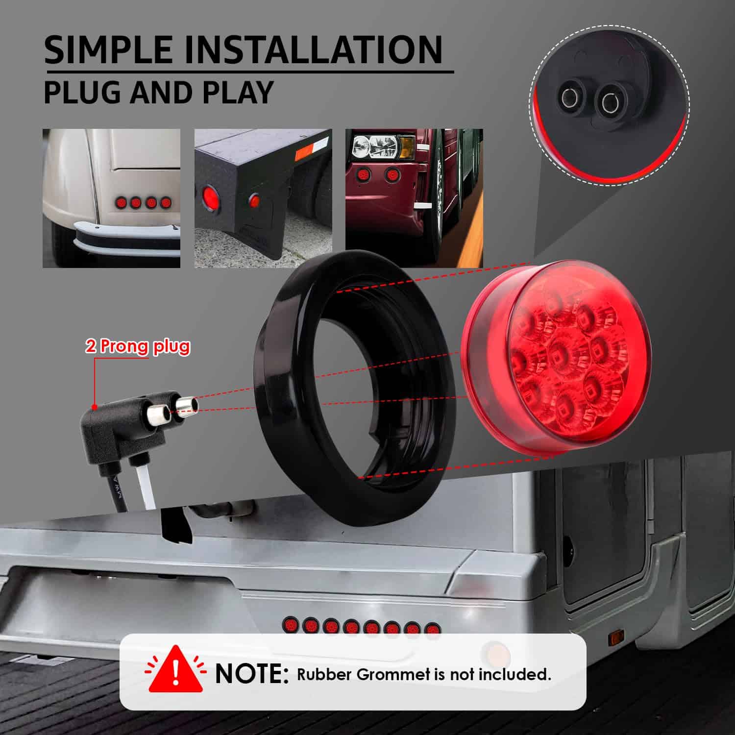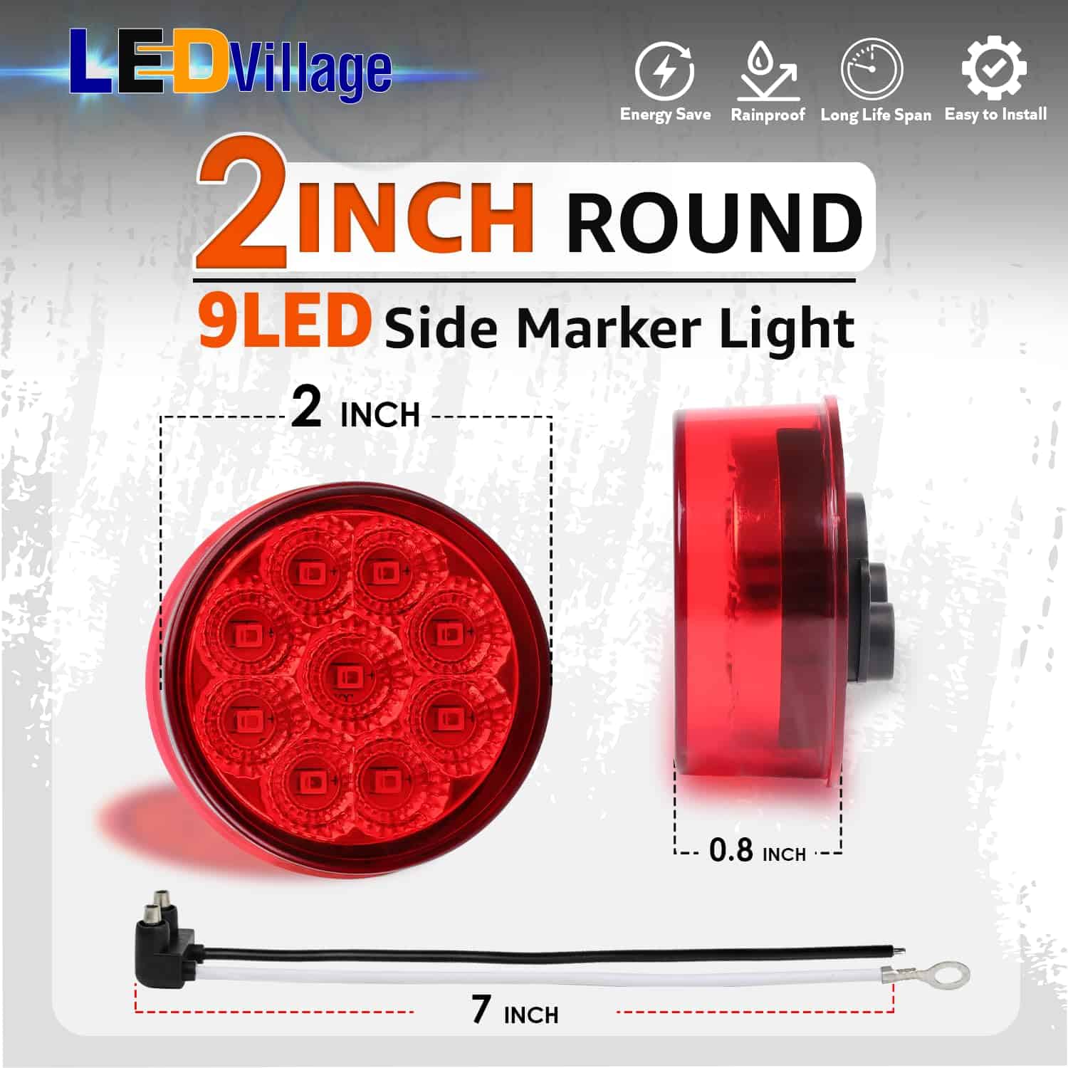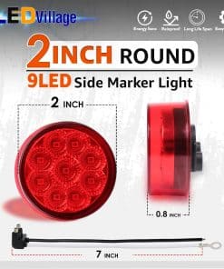 1. Paquete: 10 piezas de luces marcadoras LED redondas de 2 pulgadas en color «rojo» con cables de 2 puntas (tierra blanca, positivo negro) en el set. Ideal para luces marcadoras laterales o de claridad. Nota: El protector de goma no está incluido en el set.