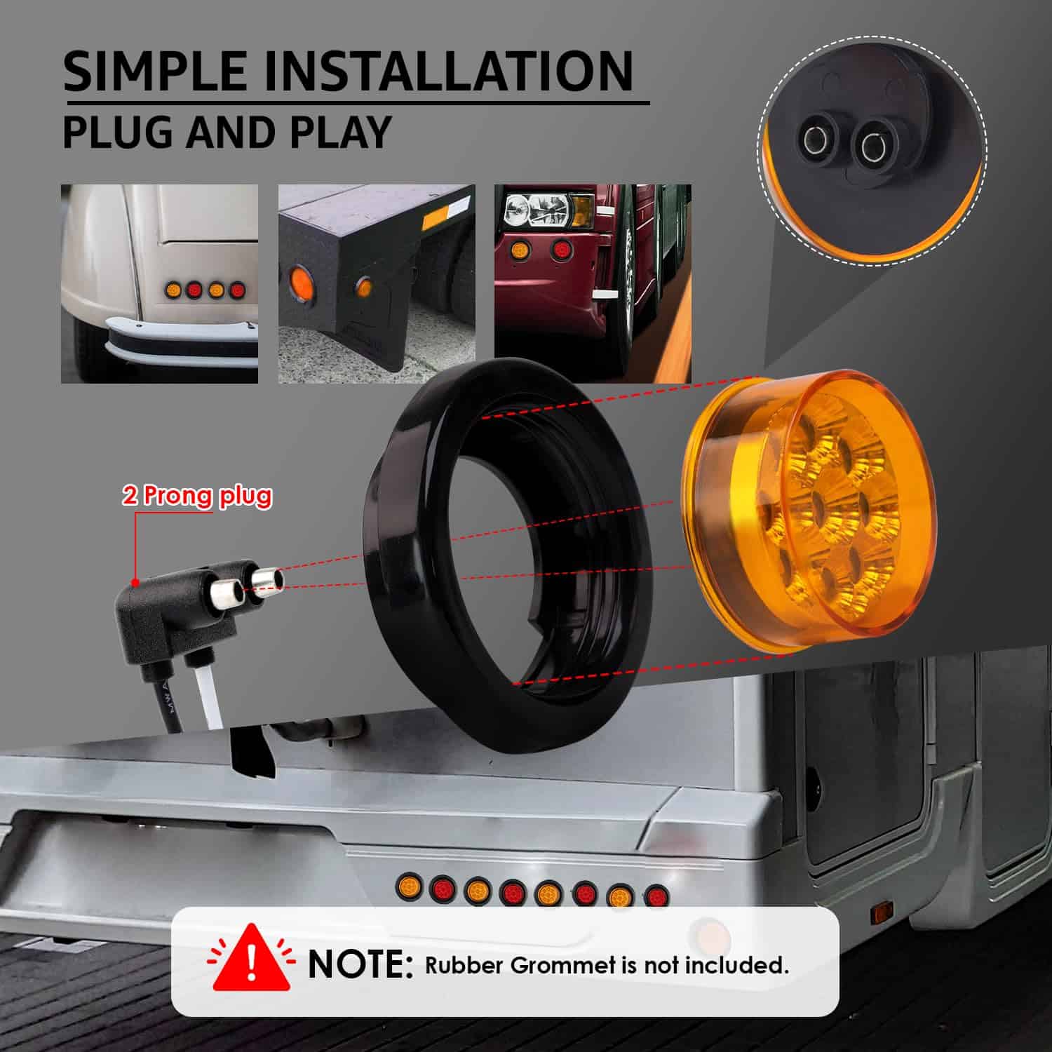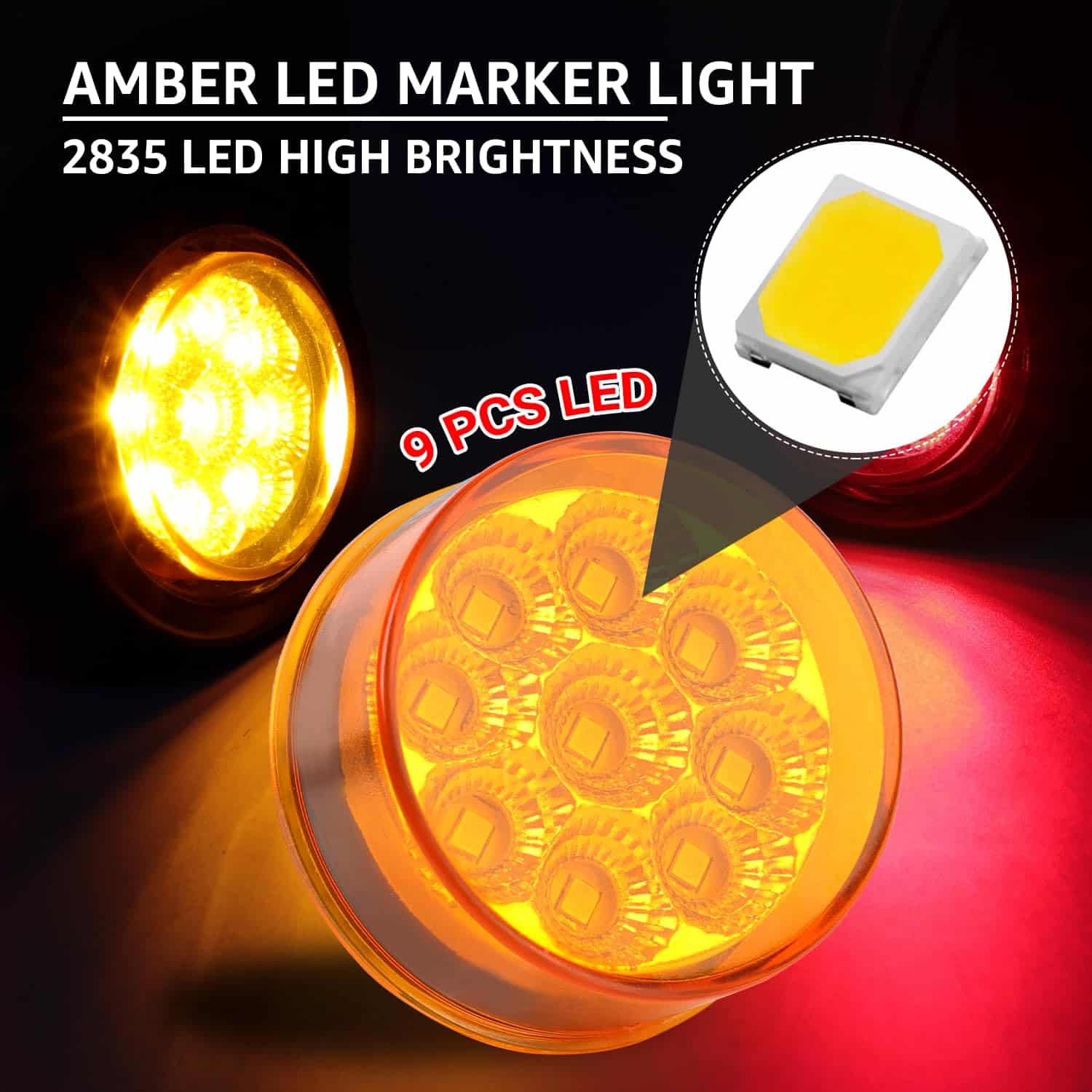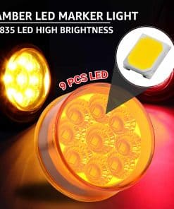 Este LED trailer light ofrece una iluminación ámbar/rojo de 9-diodo 2835 SMD LED, reemplazando las bombillas incandescentes anticuadas para uso como luces laterales, de claridad o identificación. Instalación rápida y fácil con montaje empotrado con junta de goma (se vende por separado) y enchufe estándar de 2 clavijas (provisto en el set). La construcción impermeable protege la luz de la sumersión, haciéndola ideal para camionetas, barcos, remolques y más. La carcasa y lente selladas garantizan durabilidad y previenen daños por agua a los diodos y circuitos. Para cualquier vehículo de 12V DC como camión, RV, autos de cabaña, caravanas, remolques, pickups, camiones, etc. Mejora la resistencia al agua, a prueba de golpes y vibraciones.