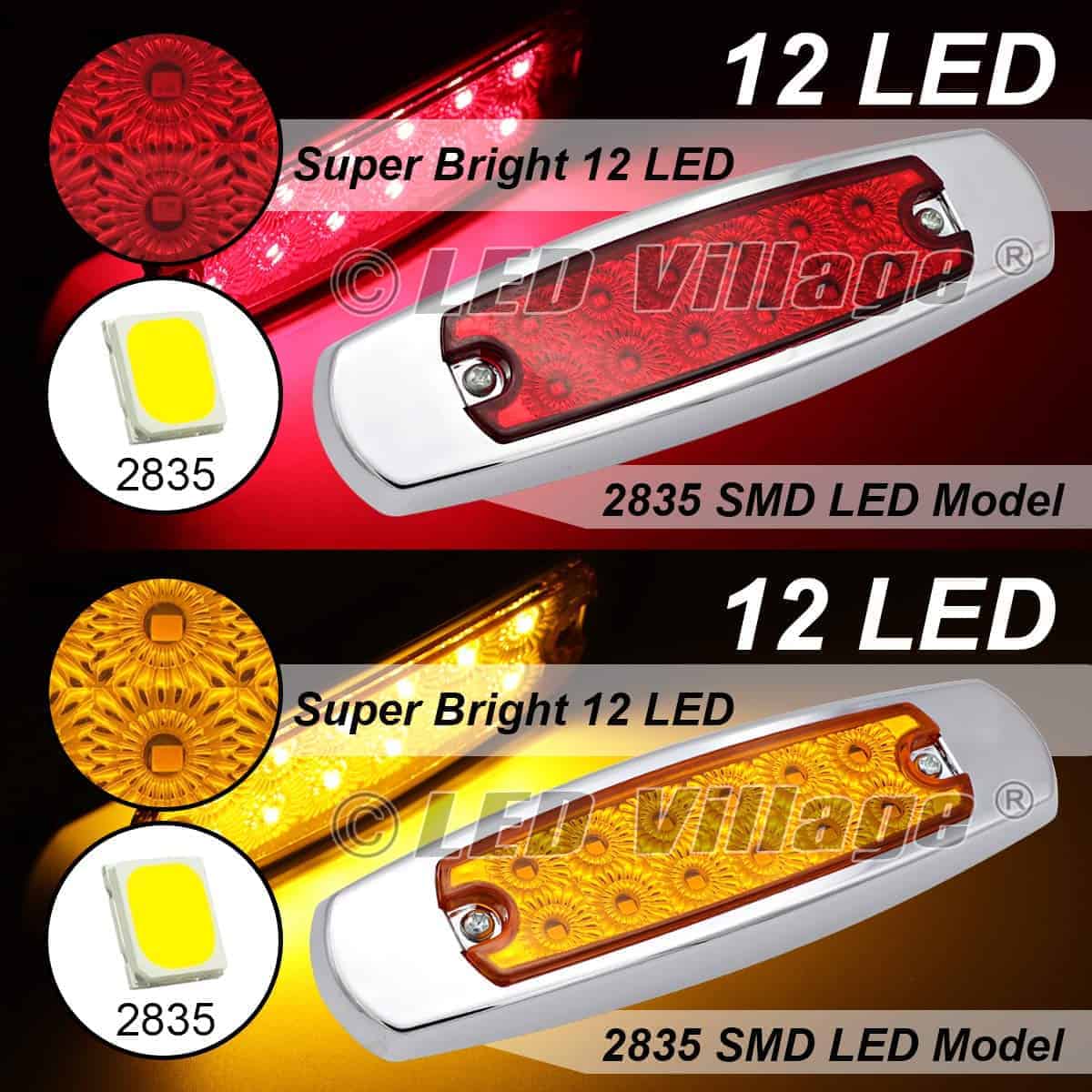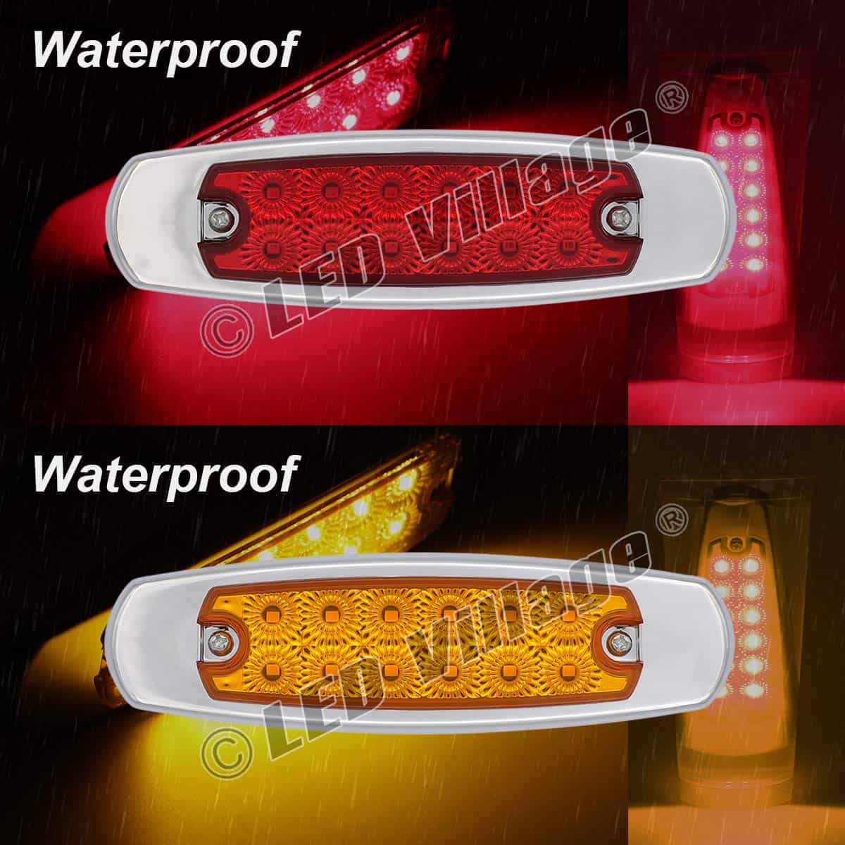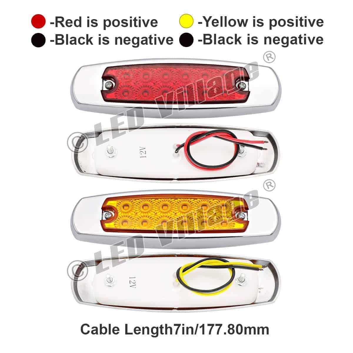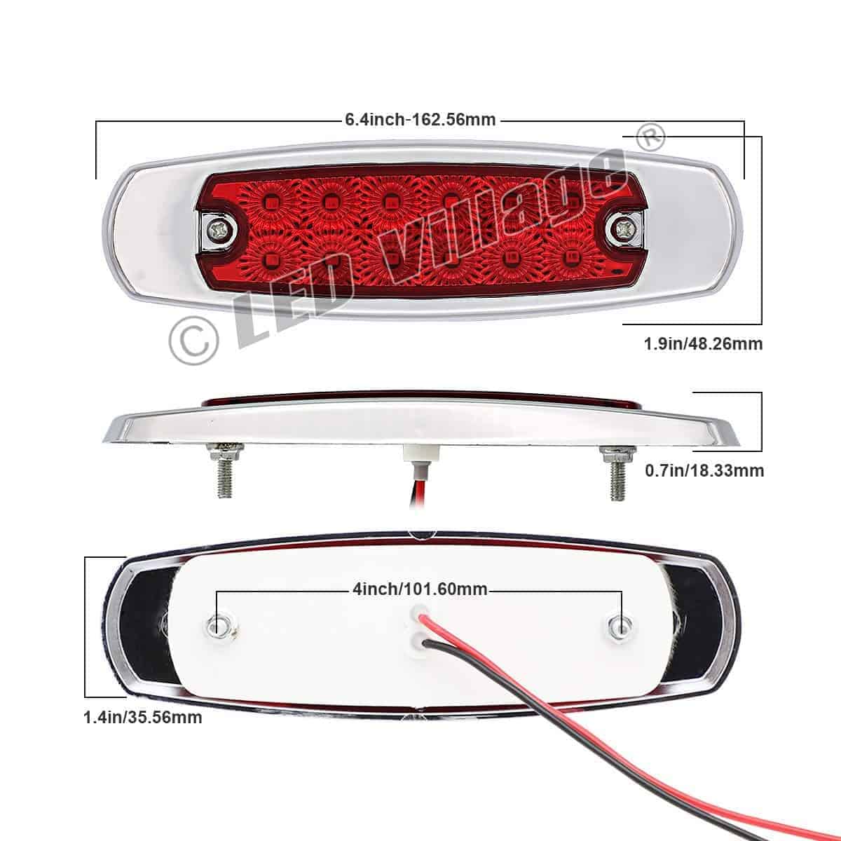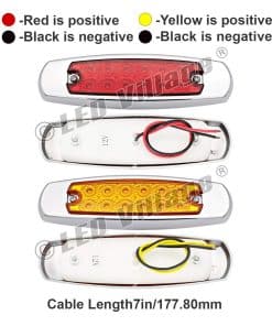 Marca: LedVillage con 1 Año de Garantía Premium (Reemplazo Gratuito). 20 Piezas de Luces de Marcador Lateral de 6.4 Pulgadas (10 Ámbar y 10 Rojas) con 12 Luces LED SMD Super Brillantes de Alta Calidad Incorporadas. Incluye Tornillos Gratis y Cable de Extremo Gratuito (Negro es Positivo: Rojo es Negativo). Dimensiones: 6.4 (L) x 1.9 (W) x 0.7 (D) Pulgadas: aproximadamente 4 de espaciado para los tornillos de montaje. Las luces funcionan como luces de marcador lateral o de despeje. Lente de PC Mejorada + Impermeable + a Prueba de Golpes + a Prueba de Polvo. Funciona en la mayoría de los vehículos de 12V DC, utilizadas como luz de marcador lateral, luz de puerta lateral, luz interior de auto, luz de marcador en techo de cabina, luz trasera, luz exterior de auto, luz de maletero, luz de autocaravana, luz de barco, etc. Aviso: Por favor, asegúrese de que la bombilla se ajuste antes de comprar, si no está seguro de qué tamaño de bombilla se ajusta a su vehículo, por favor pregúntenos.