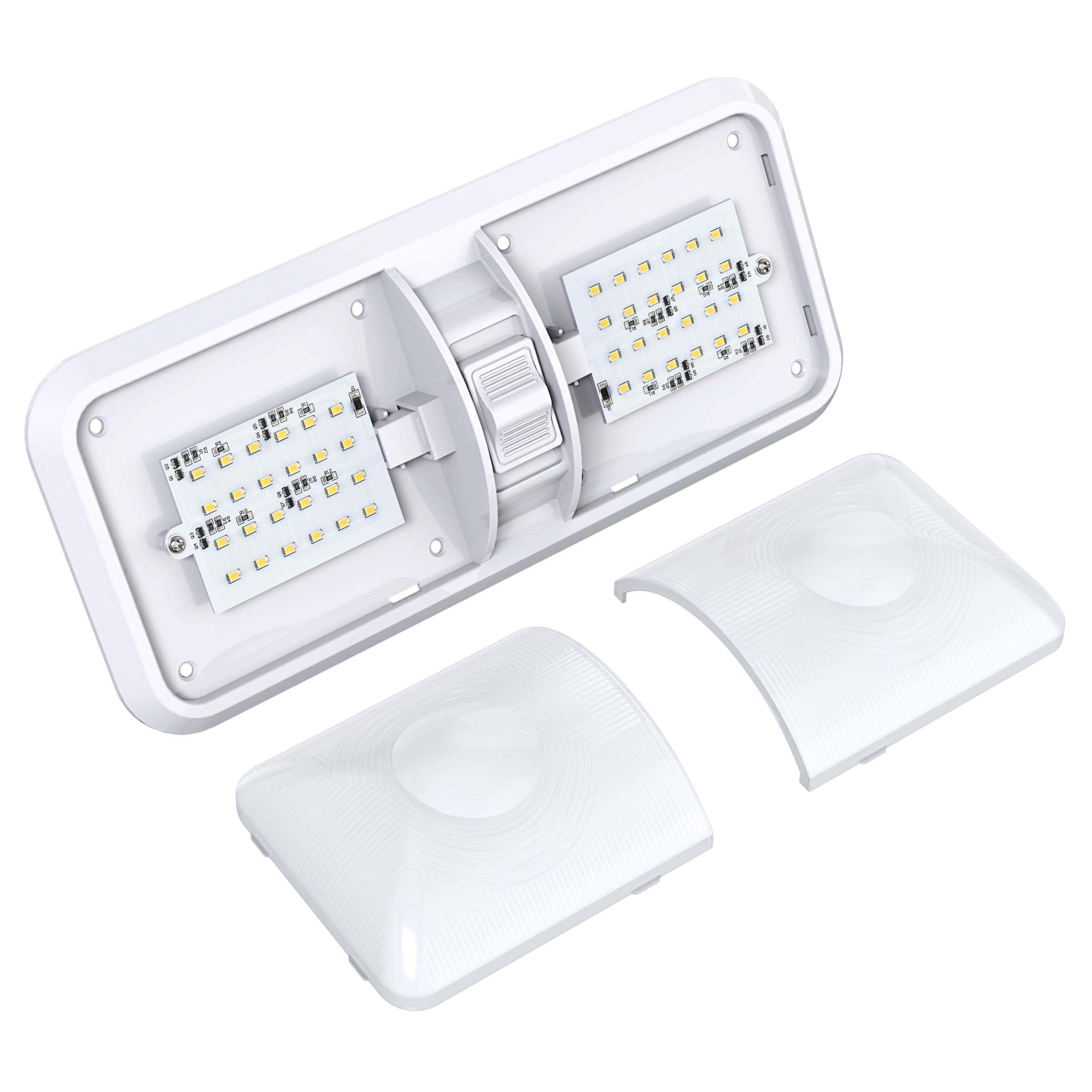 High Quality Material and Reliable Performance : this CE and RoHs approved double dome light has a life expectancy of more than 60,000 hours, lasts longer than standard bulb. It is also heat-resistant and anti-corrosive. Convenient ON/OFF Switches Design: built-in 3-way switch that enables you to use one side or both sides of the light independently; it adds great functionality to any area for lighting and it is widely used as perfect replacement light for Car/RV/Trailer/Camper/Motorhomes/Marine Boats. Lower Power Consumption & High Energy Efficiency: It comes with two T10 Wedge panels with altogether 48 pcs 2835 SMD LED Bulbs. It only draws 6 Watts and provides total 2 X 275 lumens of brightness. One Year Warranty GUARANTEE: We take full responsibility for our product and customer dissatisfaction. if there is any quality problem of our light or you are not happy with your purchase in our store, please kindly contact us and we are always ready to help