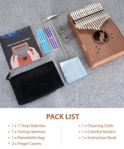Kalimba LEKATO Portátil de 17 teclas, Piano de Pulgar de Madera Sólida Mbira para Principiantes en Tono C con Libro de Música, Martillo de Afinación, Bolsa de Almacenamiento, Regalos de Navidad para Amantes de la Música