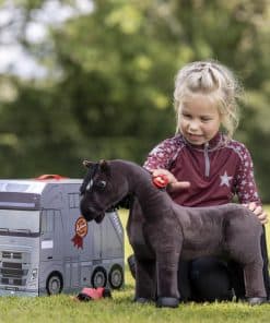 Freya es una hermosa yegua bayo de eventos con una melena y cola de color marrón oscuro trenzables. Su abrigo es increíblemente suave, perfecto para cepillar y cuidar. Su historia e imaginación la convertirán en favorita en tu colección de Toy Ponys. Freya es un caballo muy grande y amable con un gran corazón. Le encanta saltar y es capaz de superar las vallas con facilidad. Es muy independiente en el establo y puede ser un poco descarada, pero una vez que su jinete está a bordo, cuida muy bien de ellos. Le encanta comer, le encanta su heno y sus premios. Es muy bonita y le encanta que la cuiden bien para espectáculos y sesiones de fotos. Tiene mucha confianza en sí misma; ella sabe que es la mejor. Toy Pony Freya se sostiene de forma segura sobre las cuatro patas y se termina a mano de manera individual, lo que la hace única. Freya viene en un estuche de viaje lujoso que se convierte del revés para convertirse en un escenario de juego de establos. Por supuesto, hay disponibles accesorios adicionales a juego para Toy Pony Freya en tus colores favoritos, incluyendo almohadillas para sillas de montar, orejeras, vendajes de polo y arneses y bridas de trabajo completo en cuero real. Apto para edades de 3 años en adelante.
