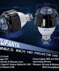 1. Diseño de Panal de Miel Versión de moda lente del proyector con diseño de panal de miel con película azul, hace que tu coche sea diferente a los demás. 2. Diseño Integrado Se adapta en espacios reducidos para la luz antiniebla de cuádruple proyección para más del 90% de los coches. 3. Buena Calidad Revestimientos ABS de alta calidad y reflectores de alta resistencia al calor+motor hecho en Japón. 4. Ajuste para lámparas H1 H4 H7 La lámpara H1 encaja directamente, el adaptador para lámpara H4 H7 está incluido (la lámpara no está incluida), se recomienda una instalación profesional.
