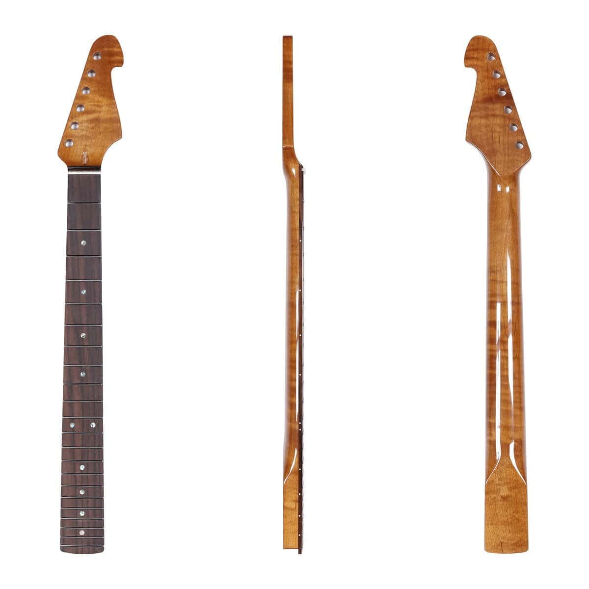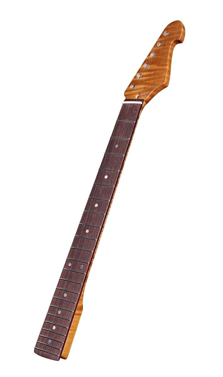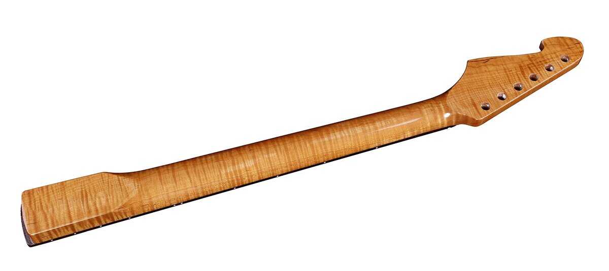 Leo Jaymz Cuello de Guitarra Eléctrica Serie Supreme – Este cuello de guitarra eléctrica de la serie Supreme de Leo Jaymz es perfecto para aquellos que buscan un reemplazo de calidad para su guitarra. Con un cuello de arce flameado tostado seleccionado y un diapasón de palisandro, este cuello no solo es duradero, sino que también ofrece un rendimiento suave y cómodo gracias a los accesorios de acero inoxidable con extremos redondeados pulidos a mano. Las incrustaciones de concha de perla seleccionadas y la cejuela de hueso de 42mm le dan un toque elegante, mientras que el radio de 9.5″ (241mm) y la longitud de escala de 25.5″ (648mm) hacen que sea fácil de tocar. ¡Haz que tu guitarra destaque con este increíble cuello de guitarra eléctrica de Leo Jaymz!
