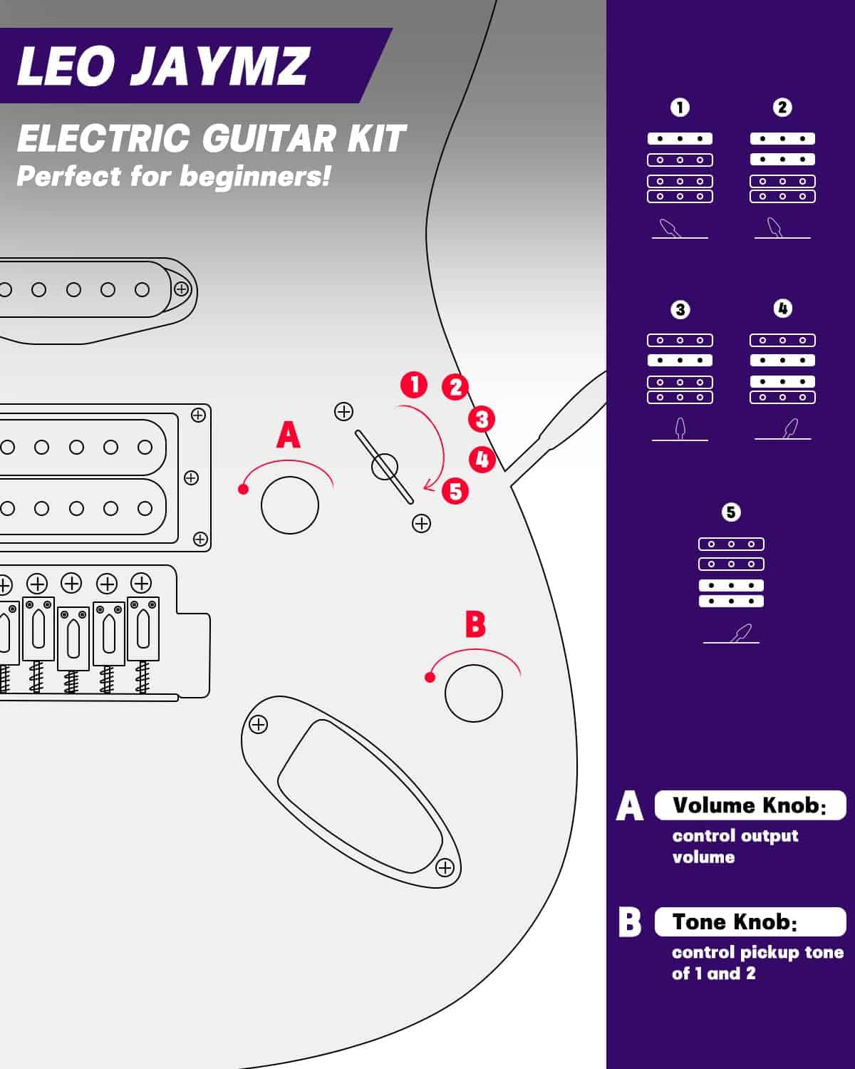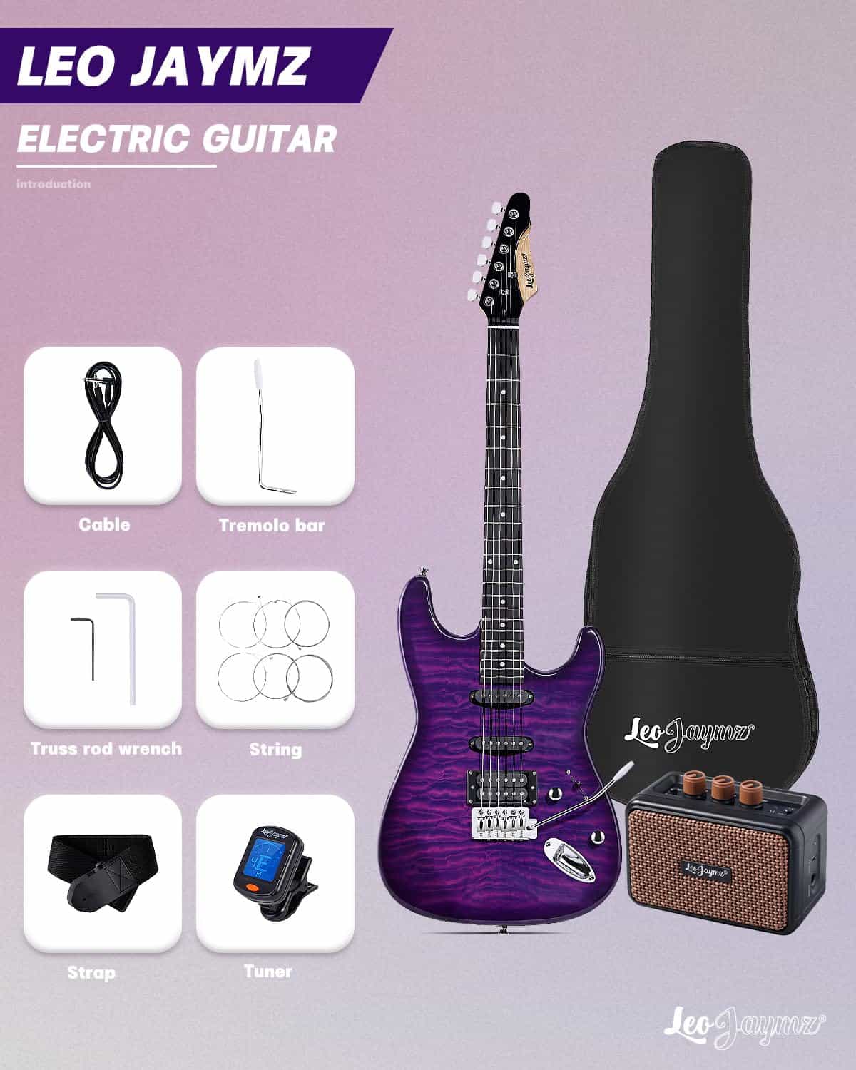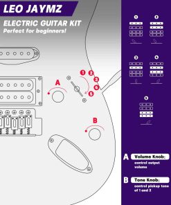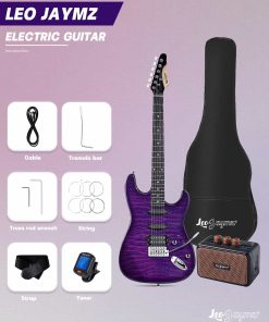 Kit de inicio completo: Perfecto para principiantes, este Leo Jaymz kit de guitarra eléctrica incluye: una guitarra eléctrica de estilo ST de tamaño completo de 39″, un amplificador portátil de 5W, afinador, correa, funda, cable y cuerdas adicionales. Construcción de alta calidad: Con un mástil y diapasón de arce junto con un cuerpo de álamo, esta guitarra ofrece una calidad de sonido superior y durabilidad. El cómodo mástil con forma de C garantiza facilidad de juego durante períodos prolongados. Opciones de sonido versátiles: Equipada con una configuración de pastilla SSH y un sistema de interruptores de 5 posiciones, que permite una amplia gama de tonos adecuados para varios géneros musicales desde sonidos limpios hasta distorsionados. Amplificación portátil: El amplificador portátil de 5W incluido proporciona hasta 6 horas de tiempo de reproducción continua, perfecto para sesiones de práctica en cualquier lugar. Con un peso de solo 0.8lb (363g), es increíblemente ligero y compacto, lo que lo hace excepcionalmente fácil de llevar. Diseño cuidadosamente pensado: Con la comodidad del jugador y el rendimiento en mente, la guitarra cuenta con una longitud de escala de 25.5″, un radio de diapasón de 14» y un ancho de cejuela de 42mm, haciéndola accesible y agradable para jugadores de todos los niveles.