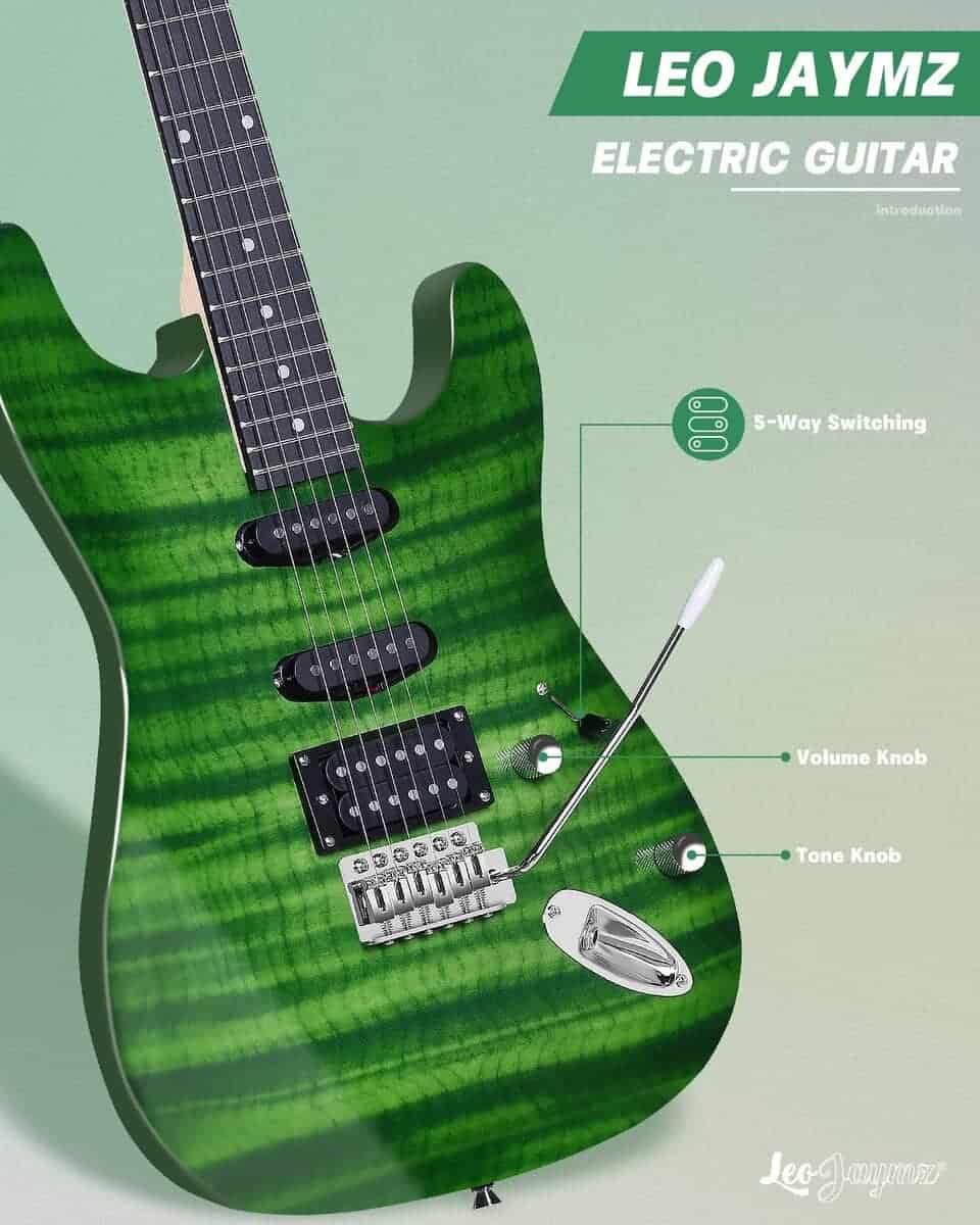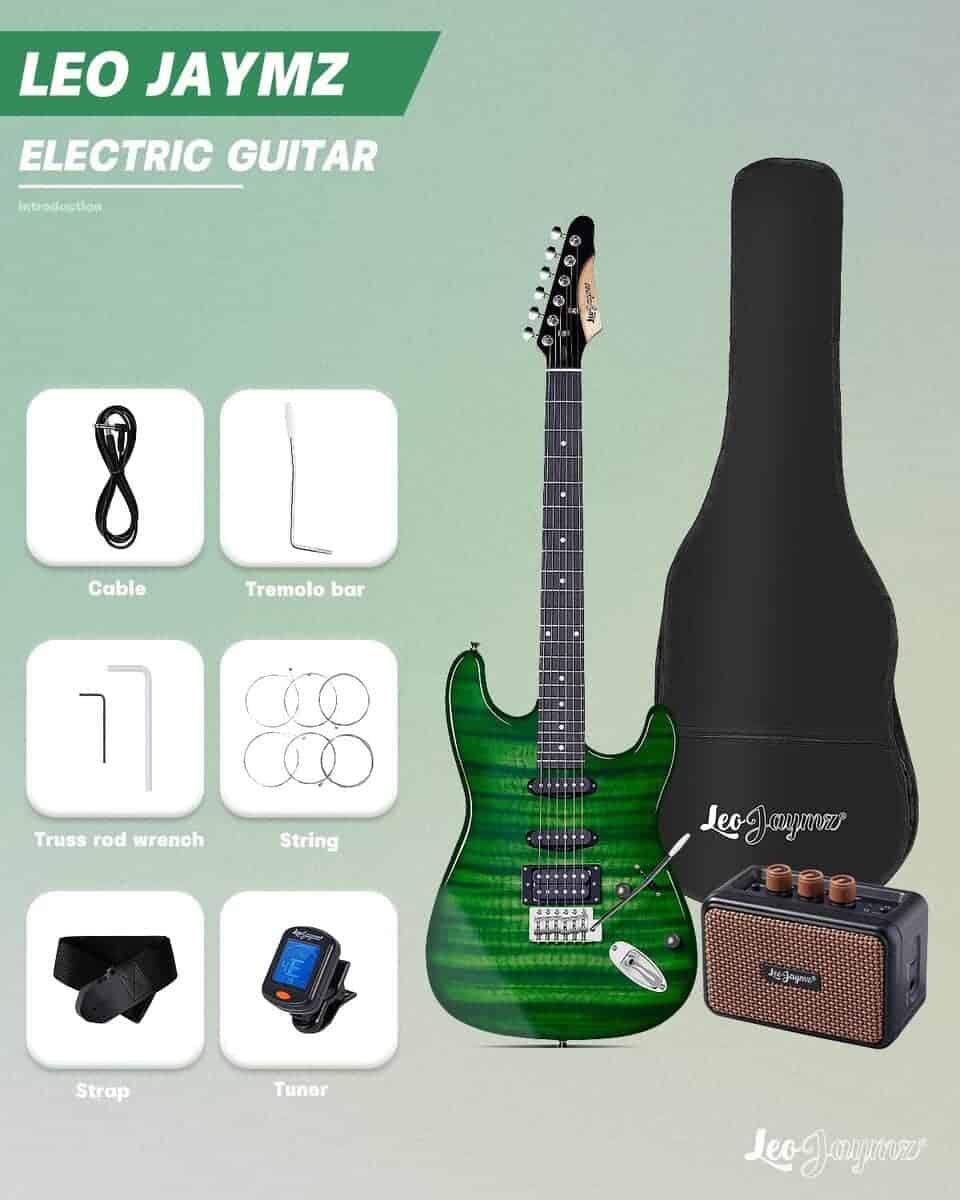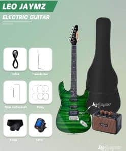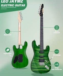 Leo Jaymz Kit de Inicio de Guitarra Eléctrica -Llama Verde