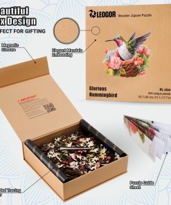 Crafted with precision, each piece of the Hummingbird wooden puzzle opens a door to nature’s vibrant colors, offering a challenging mosaic for enthusiasts. Experience finely laser-cut 5 mm wood pieces, featuring an unparalleled set of 50 shapes like animals, insects, flowers, and plants. A unique teaser of wildlife magic exclusive to our collection. Encased in a beautiful box, this creative puzzle emerges as the perfect artifact gift. Ideal for birthdays, celebrating both men and women who revel in the fantasy and mystery of solving wood cut puzzles. With its advanced difficulty, this wood jigsaw puzzle invites you into a state of zen. Enjoy the odd-shaped whimsies that enhance cognitive skills amidst the mystique of nature’s artwork. Dive into the game, where each piece a bird, a nest, or a leaf becomes an artful step towards mental agility. Cool for fun family play or quiet moments.
