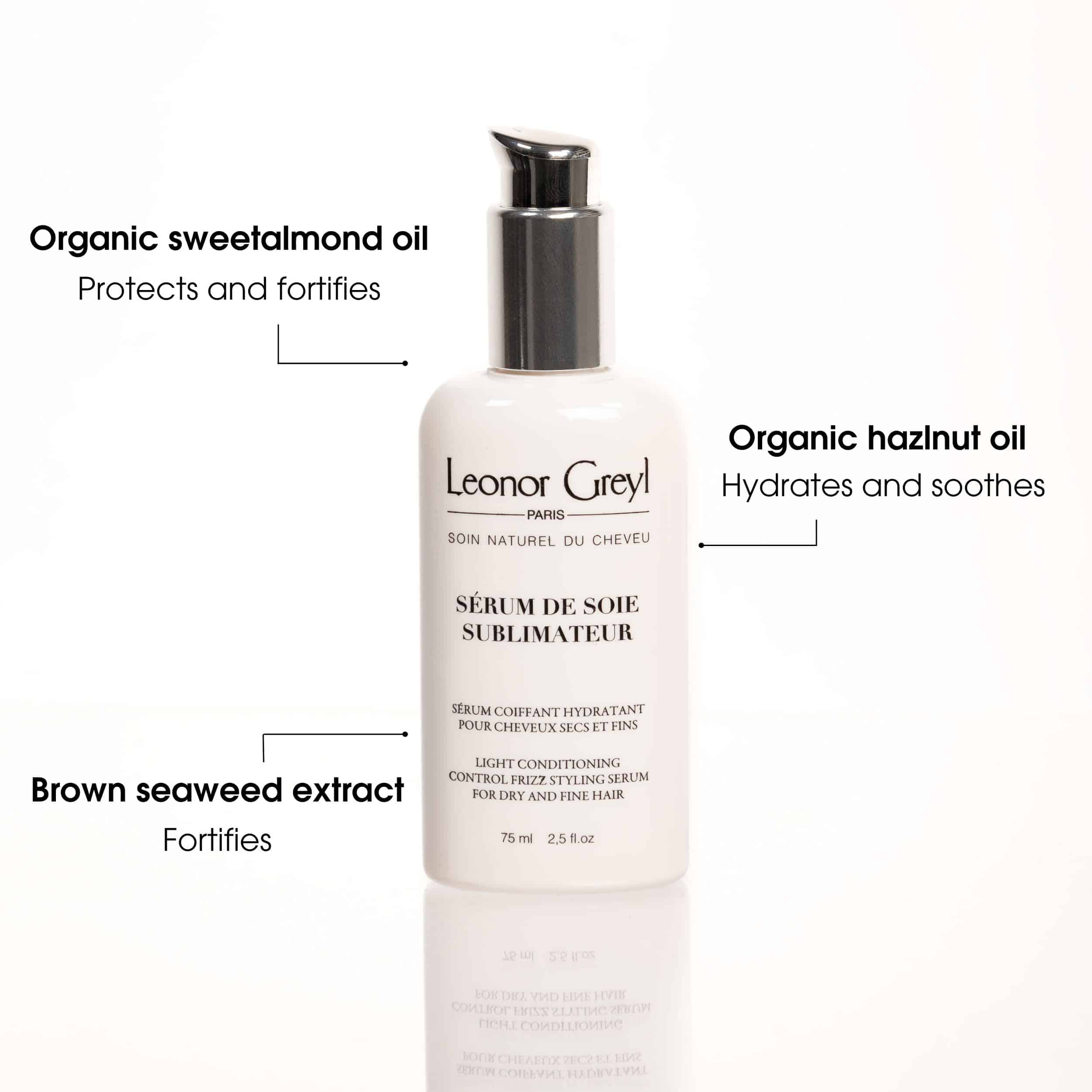 Serum de Seda Sublimadora de Leonor Greyl es un serum de styling de uso diario para todo tipo de cabello. Formulado con Proteínas de Seda para un cabello suave como la seda, y Aceites Vegetales especialmente seleccionados para aumentar la flexibilidad y manejabilidad. Utilizado en cabello húmedo, Serum de Seda desenredará, utilizado en cabello seco, suavizará y acondicionará. En todos los casos, protege y nutre su cabello sin apelmazarlo. Esta es la fórmula perfecta para resaltar la belleza de su cabello, sea cual sea su tipo de cabello, de forma diaria. Crea la clase de suavidad que ayuda a lograr todo tipo de estilos. El Serum de Seda facilita el secado para un look alisado, al mismo tiempo que protege el cabello, o reestructura naturalmente los rizos. En todos los casos, evita el frizz.