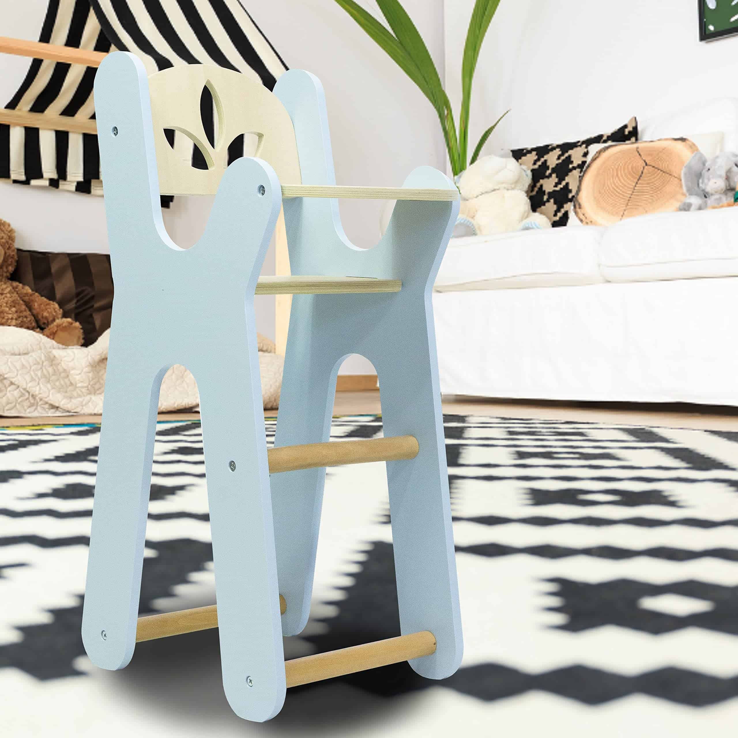 Leonora – Silla alta de madera para muñecas- Silla azul