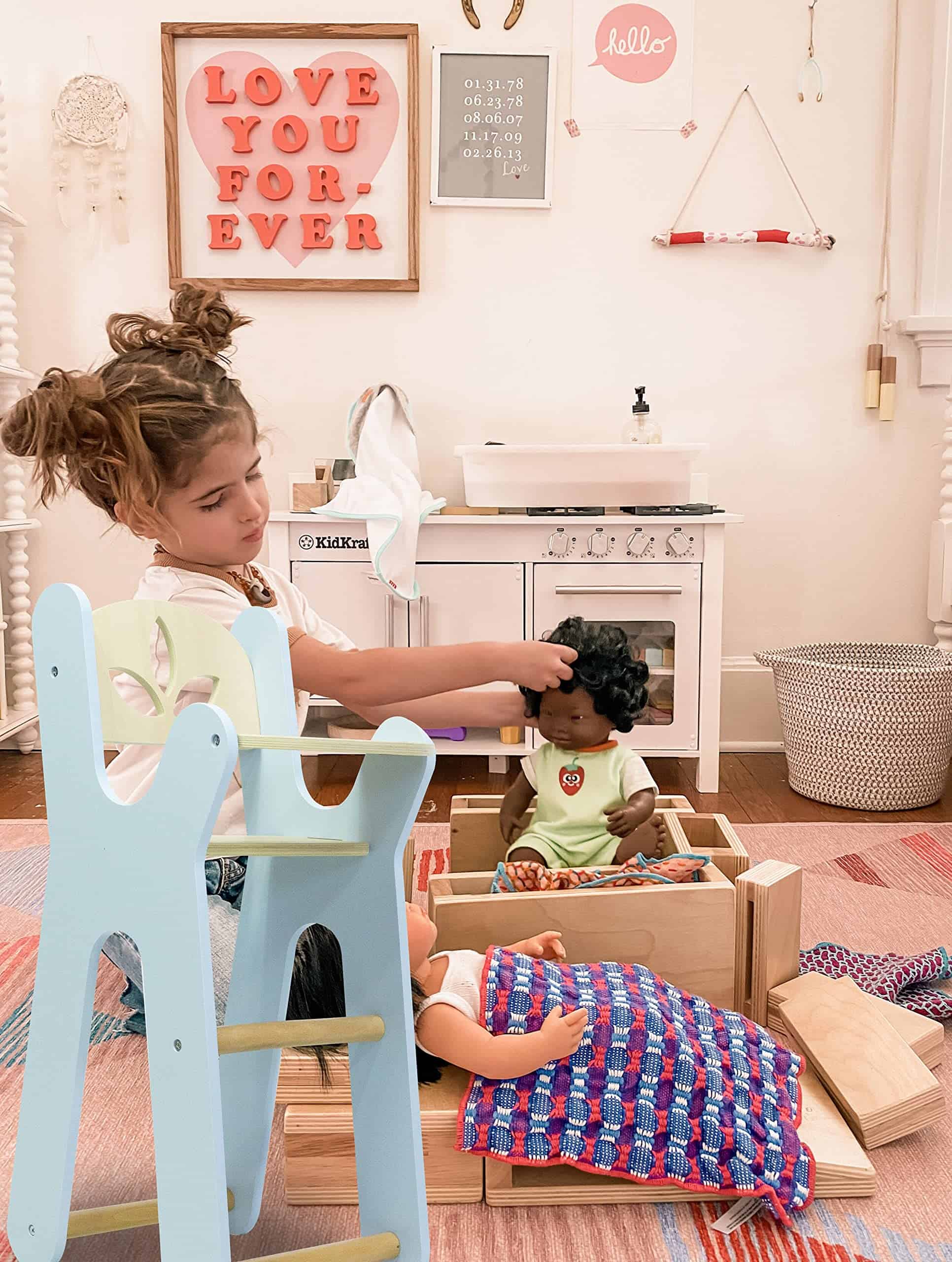 Esta adorable silla alta azul claro se convertirá en el juguete favorito de tu niño. Tu hijo puede colocar su osito de peluche favorito, muñeca o juguete de peluche en el asiento y jugar a la casita. Los juguetes de madera dan a los niños un respiro de sus pantallas de televisión y iPads. Se anima a los más pequeños a ser creativos y usar su imaginación. Nuestros juguetes de madera escandinavos se reconocen por su simplicidad, durabilidad, minimalismo y funcionalidad. Nuestros bellos diseños neutros en cuanto al género están construidos para durar y son queridos por niños y padres de todo el mundo. Ensamblaje rápido y fácil: ¡Nuestros juguetes de madera tardan aproximadamente 10 minutos en ensamblarse con las herramientas incluidas! Puedes estar seguro de que nuestros juguetes de madera quitarán el estrés del ensamblaje de juguetes con nuestras instrucciones fáciles de seguir. Tu niño estará listo y listo para jugar con su nuevo juguete favorito en poco tiempo. Este juguete sería un regalo ideal para un baby shower, cumpleaños, guardería, salón de clases y días festivos. Nuestros juguetes confiables están diseñados para ir a donde quiera que vaya su pequeño y crecerán con su hijo. Deja que nuestros juguetes creen nuevos recuerdos para tu hijo hoy.