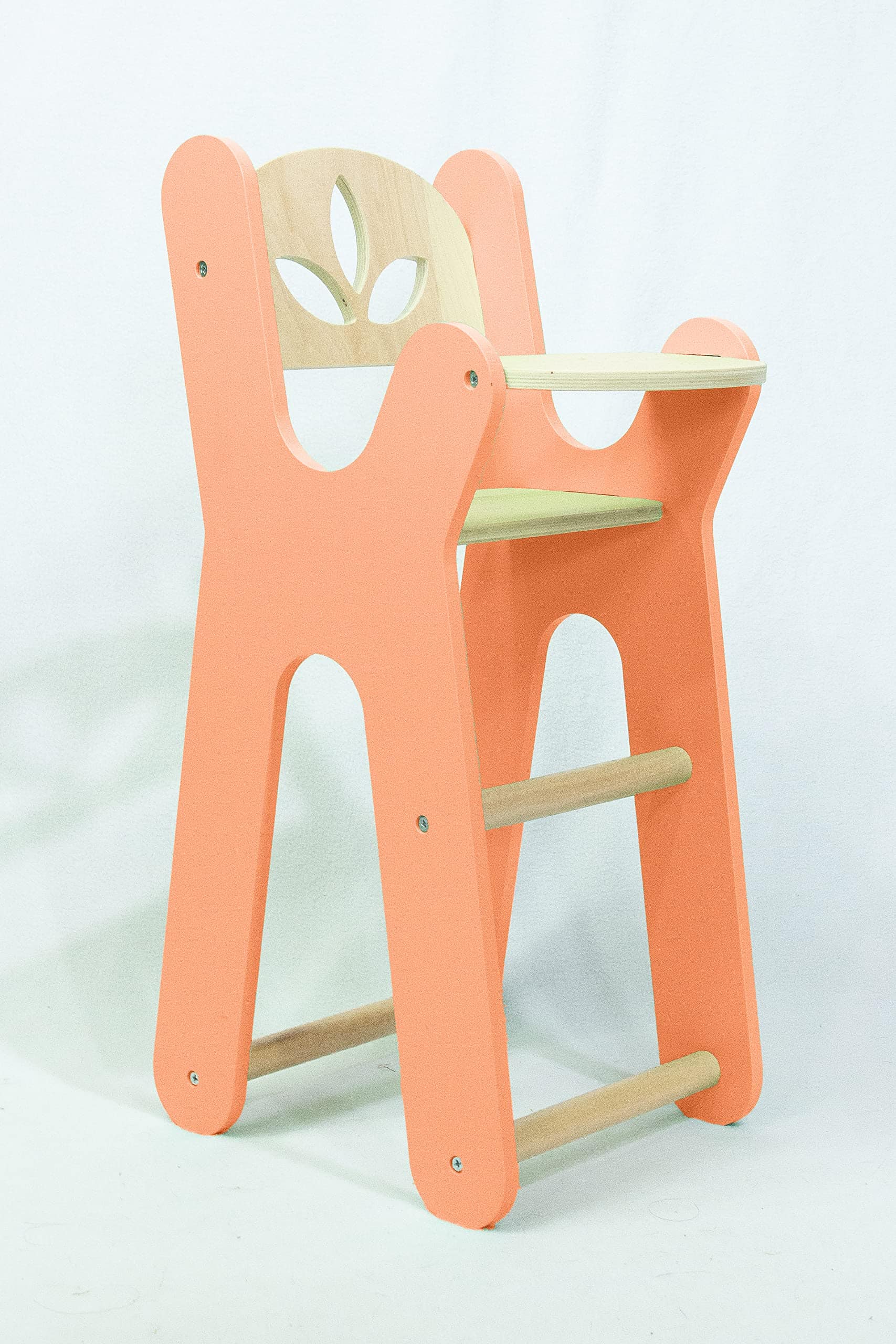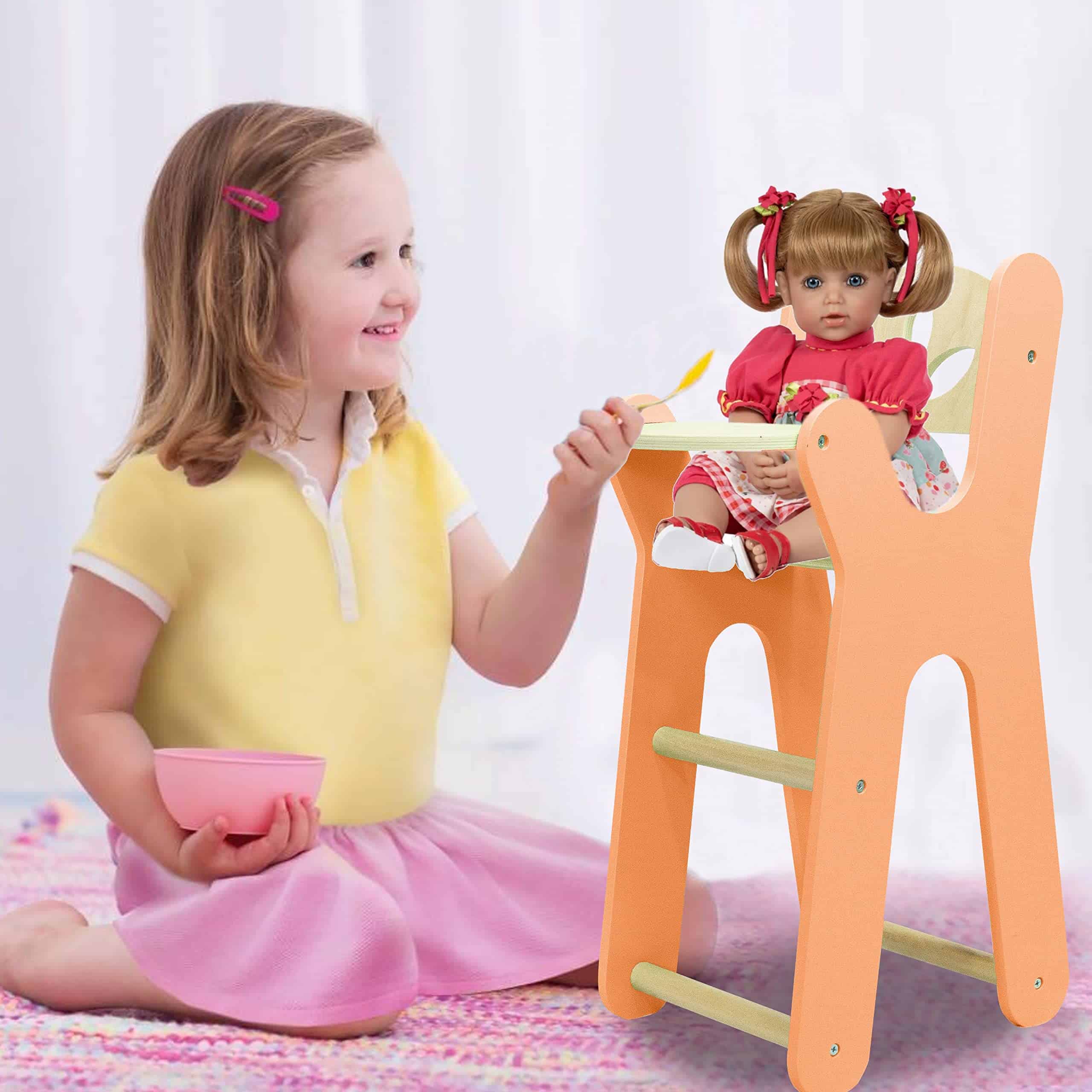 Leonora – Silla alta de madera para muñecas – Silla naranja