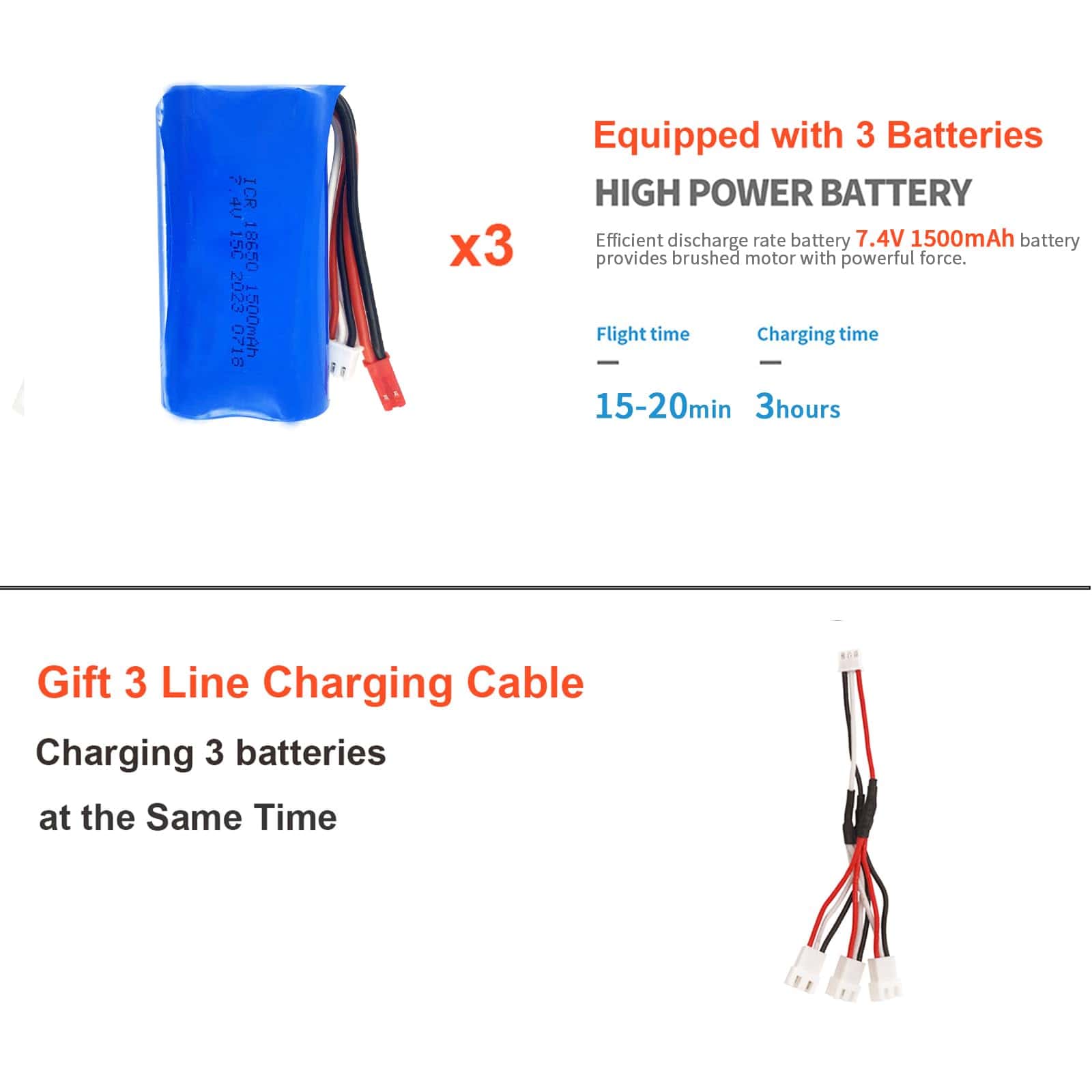 1 Cable de Carga de 3 líneas (carga de 3 baterías al mismo tiempo)