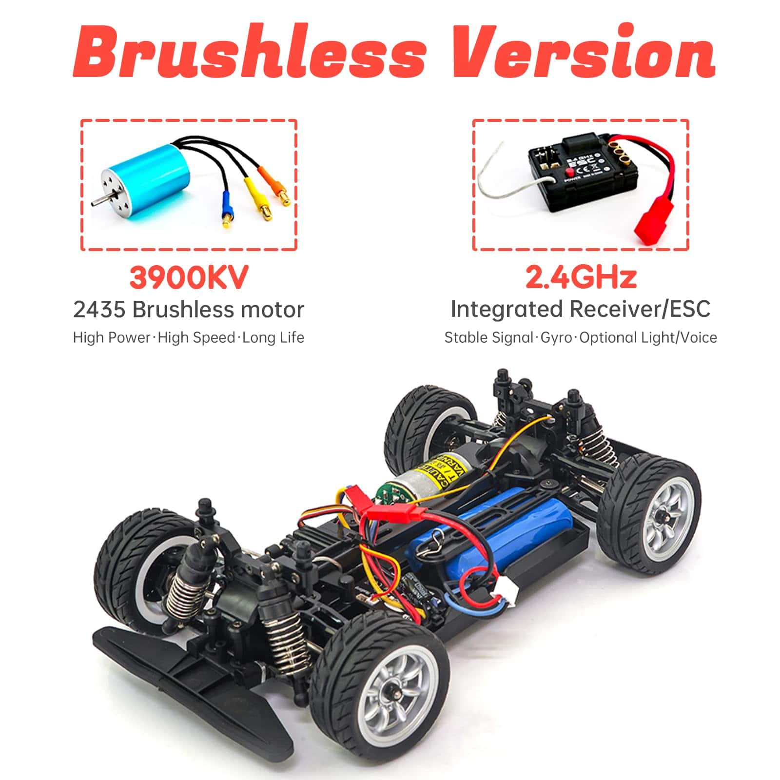 ESC y receptor de 2.4 GHz integrados con Gyro Frecuencia: 2.4 GHz