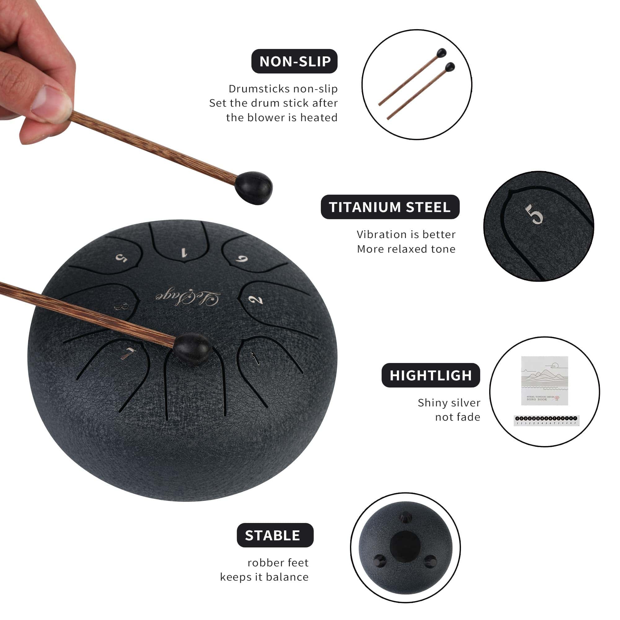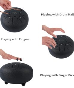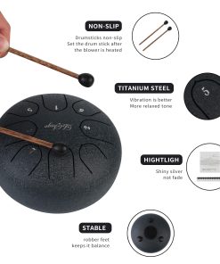 2.Tocado con las manos o con los mazos de goma incluidos, el Tambo de Lengua de Acero LeSage es capaz de producir melodías texturas hermosamente expresivas. Su marco de acero de precisión tiene un acabado duradero que puede resistir horas y horas de práctica y actuaciones. Su sistema de afinación fija significa que no tienes que preocuparte por salirte de la clave durante el uso del conjunto, solo deja que la música guíe tus manos o mazos. Se incluye una bolsa de almacenamiento para viajes convenientes.