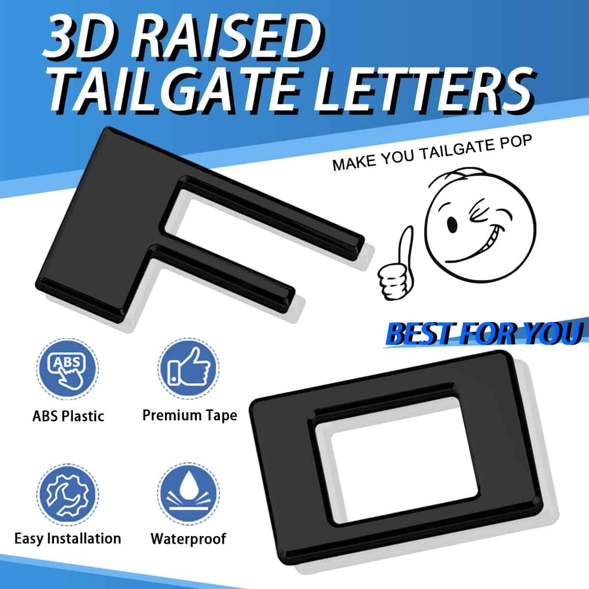 3. LETRAS DE LA PUERTA TRASERA ELEVADAS EN 3D – Una letra de insignia sólida elevada con un bonito bisel para adaptarse a la superficie curva y compleja creando un efecto 3D genial.