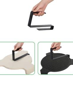 Levantador de placa diseñado para facilitar el manejo de la Placa Setter para Kamado Green Egg de Gran Tamaño, Piedra para Pizza, Accesorios para Barbacoa BBQ Tools, la mayoría de las parrillas Kamado Smoker, piedra para pizza y otros deflectores de calor de cerámica u hierro fundido. El diseño del mango antideslizante garantiza un agarre firme durante su uso y evita posibles quemaduras. Permite quitar o colocar el plato setter de forma rápida y segura, reduciendo el riesgo de daños o roturas. Con un tamaño adecuado de 9 pulgadas de longitud y 5 1/2 pulgadas de altura, este levantador es una herramienta práctica y segura para su parrilla. Advertencia: Para garantizar la seguridad suya y de su hijo, por favor utilice el levantador de manera correcta. ¡Que tenga un excelente día!