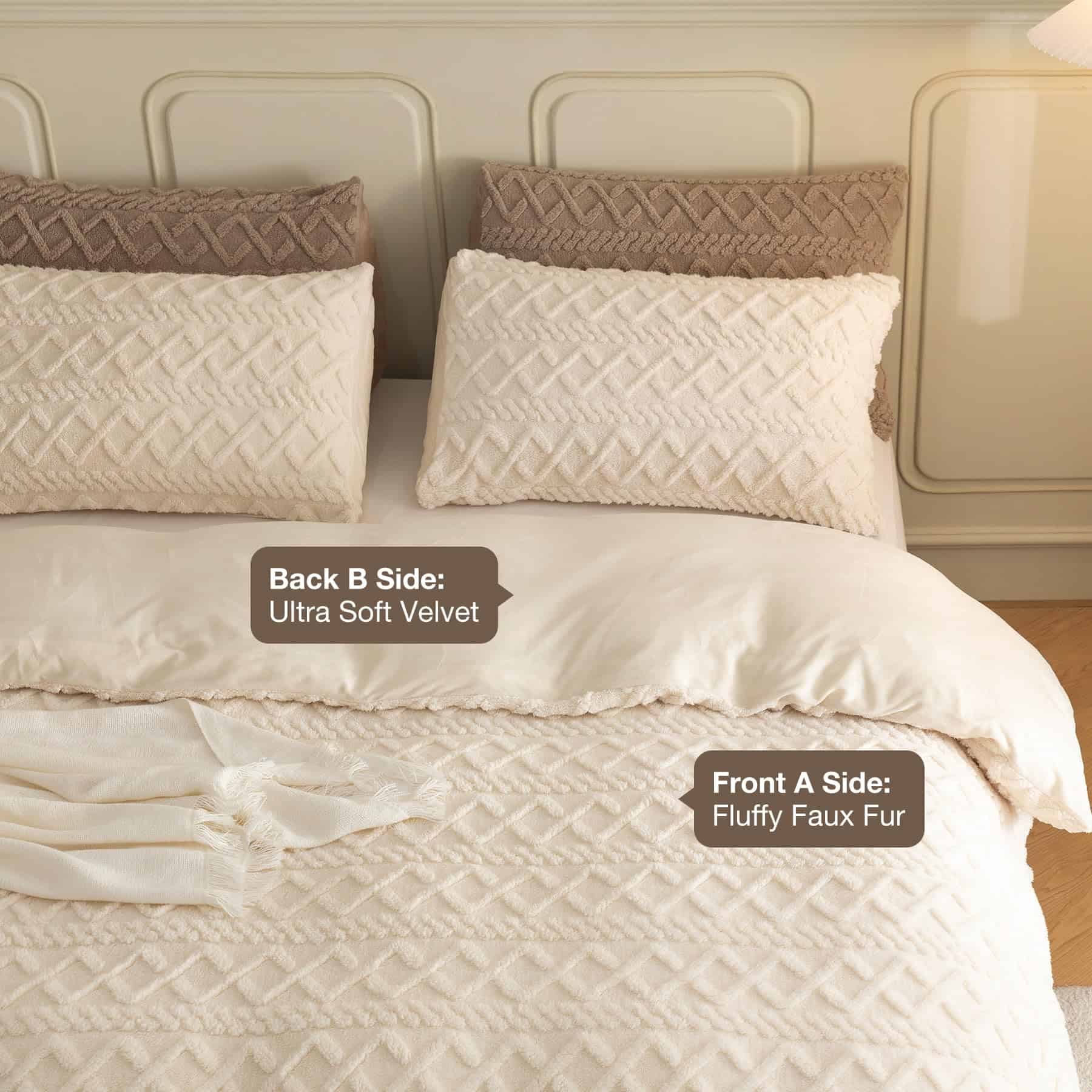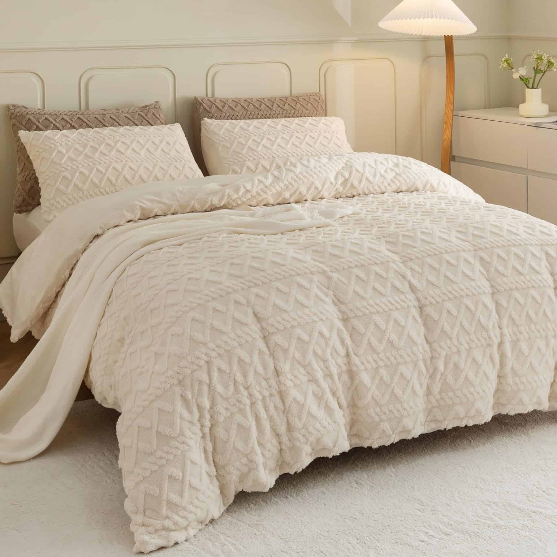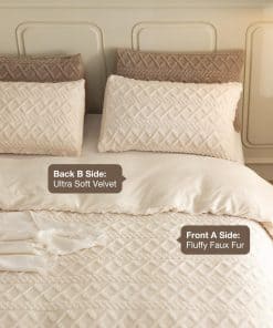 1. MATERIAL ACTUALIZADO: La funda de edredón esponjosa Levoo está hecha de 100% microfibra. El frente es de tejido de felpa esponjosa de alta densidad. El reverso es de tela de terciopelo suave como la seda. La funda de edredón esponjosa está certificada por OEKO-TEX STANDARD 100. Las telas premium son cómodas, transpirables y duraderas. 2. INFORMACIÓN DE TAMAÑO: La funda de edredón de terciopelo queen incluye una funda de edredón de felpa (90 x 90 ) y 2 fundas de almohada (20 x 26 ). Por favor, tenga en cuenta que se trata de un juego de funda de edredón que no incluye el inserto de almohada, edredón o inserto de edredón. La imagen mostrada es cómo queda después de colocar el edredón. 3. DISEÑO EXQUISITO: La funda de edredón esponjosa está diseñada con una cremallera YKK duradera que facilita separar el inserto de la funda. Los cuatro lazos de esquina aseguran que su edredón permanezca en su lugar adecuado en lugar de agruparse en una bola. Los patrones geométricos en racimo añaden elegancia a su hogar. 4. USO MULTI-FUNCIONAL: Puede colocar su edredón dentro de la funda de edredón esponjosa que proporcionará calor constante en días fríos. Además, puede utilizarse como manta para la cama durante días calurosos. Ya sea Navidad, Día de San Valentín, Cumpleaños, este juego de funda de edredón esponjosa será un regalo perfecto. 5. CONSEJOS CÁLIDOS: Al limpiar, por favor, déle la vuelta, lave a máquina con ciclo de agua fría, secado suave y a baja temperatura. Evite el secado colgando que provocará deformaciones. No usar lejía ni planchar. Cada producto LEVOO es cuidadosamente seleccionado y nos comprometemos a brindarle una excelente experiencia de sueño.