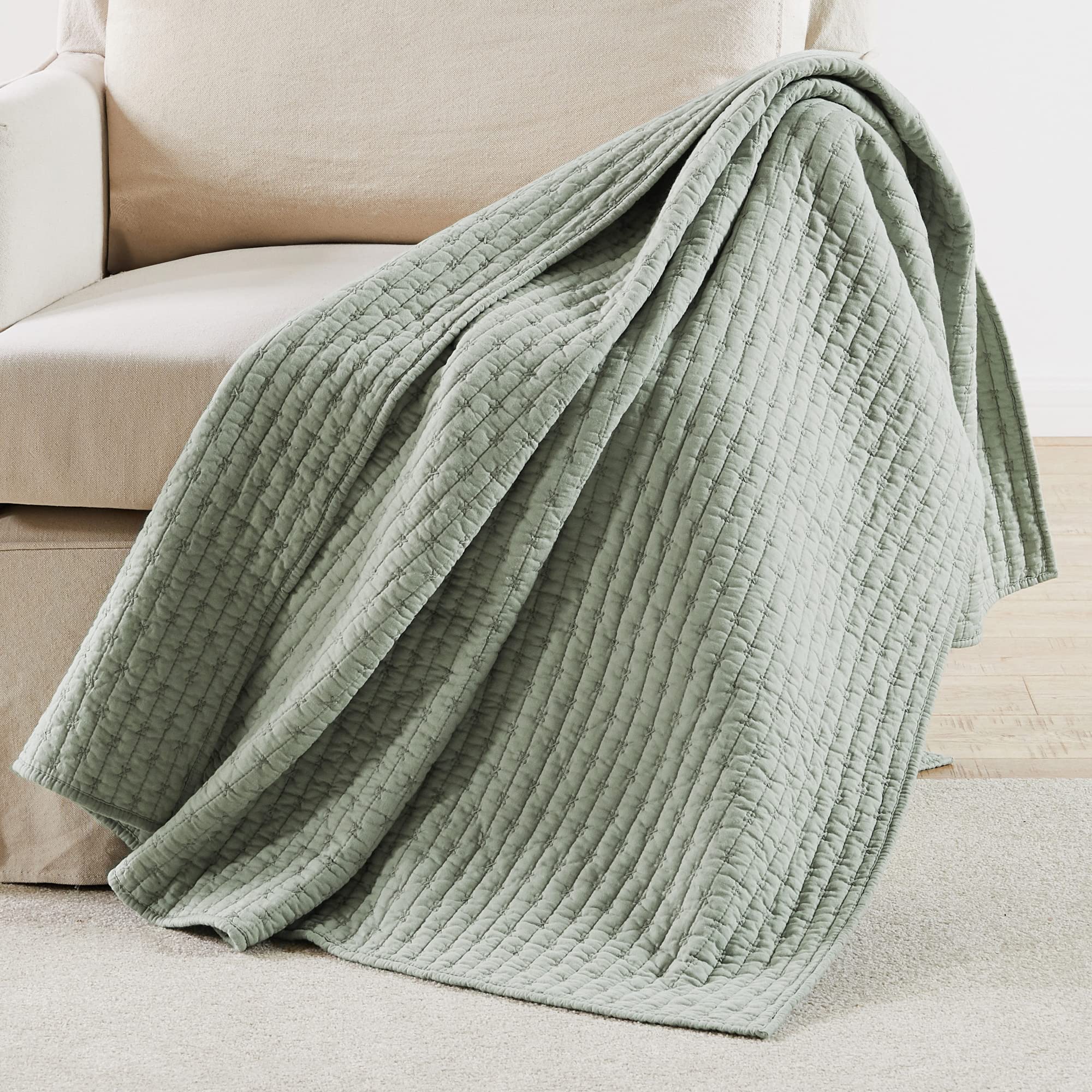 Una de nuestras colchas más populares, Cross Stitch Desert Sage está inspirada en técnicas de bordado a mano, con un diseño de colcha de cruz en color Salvia del Desierto y un encantador patrón reversible del mismo diseño. Un borde encuadernado proporciona contraste y textura para completar el look. Hecho de algodón suave y relleno con un relleno rico en algodón (que incluye algodón, poliéster y otras fibras), esta colcha nunca se sentirá pesada, rígida o incómoda. La colcha Cross Stitch Desert Sage tiene una sensación súper suave que simplemente amarás. Nuestra colcha (50×60 pulgadas) está diseñada para dar a tu habitación una sensación de comodidad y lujo. Agrupa tu decoración de habitación con nuestro juego de cama reversible a juego. El diseño bordado de Salvia del Desierto trae acentos simples a tu hogar y combinará con una variedad de looks diferentes y decoración de dormitorios. También puedes refrescar tu habitación con juegos de colchas coordinadas y cojines cuadrados europeos de la colección Levtex Home.