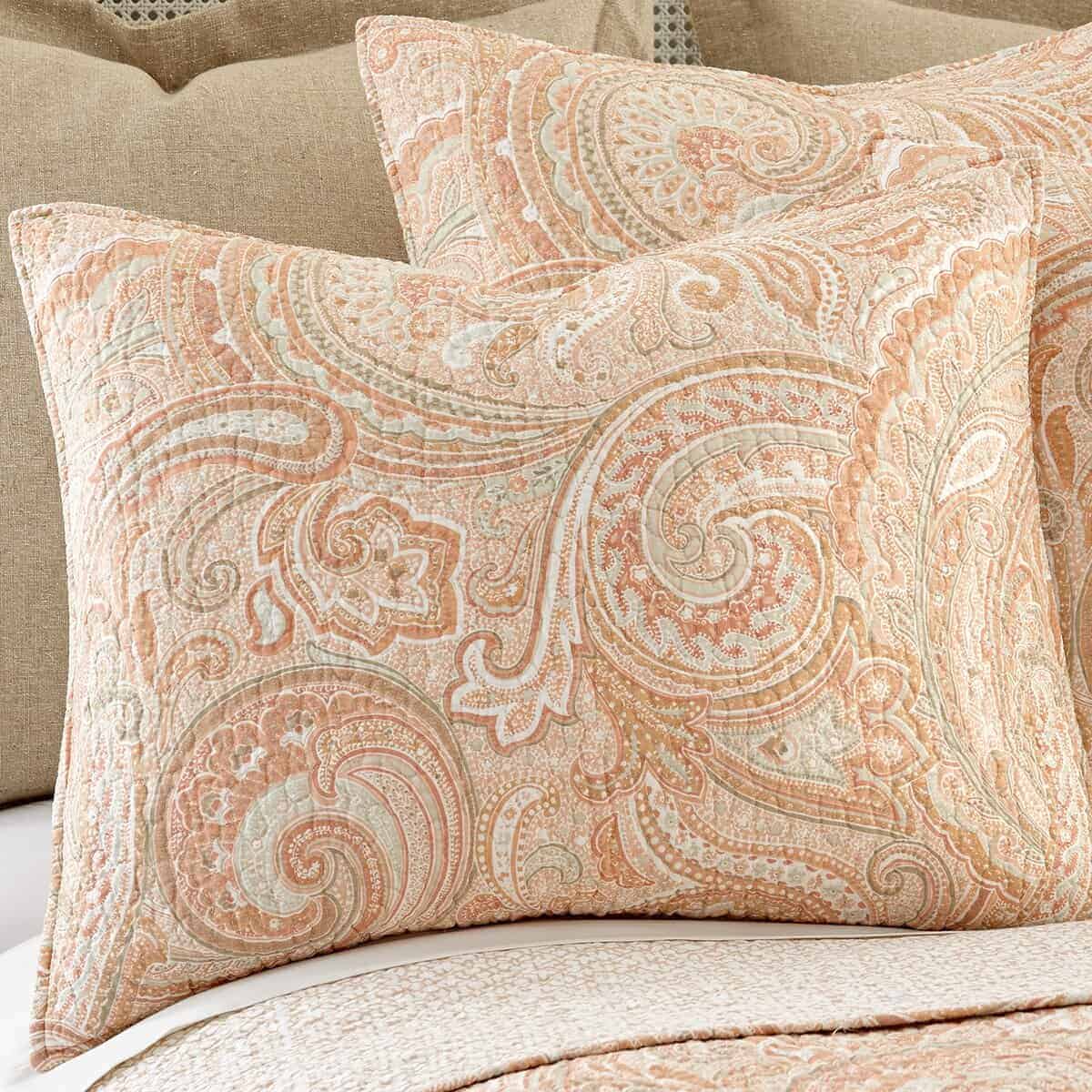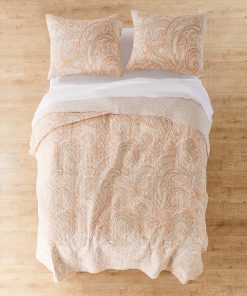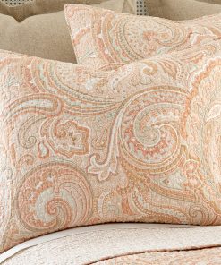 1. DISEÑO SPRUCE CORAL: Uno de nuestros juegos de colcha más populares, Spruce Coral está inspirado en patrones tradicionales de paisley, con un intrincado patrón de paisley en tonos suaves de coral y un encantador patrón reversible de celosía coral; Un borde cosido proporciona contraste y textura para completar el aspecto; Las fundas de almohada a juego se cortan aleatoriamente del mismo tejido que la colcha, lo que hace que cada funda sea única y no idéntica a ninguna otra funda.