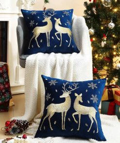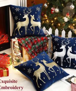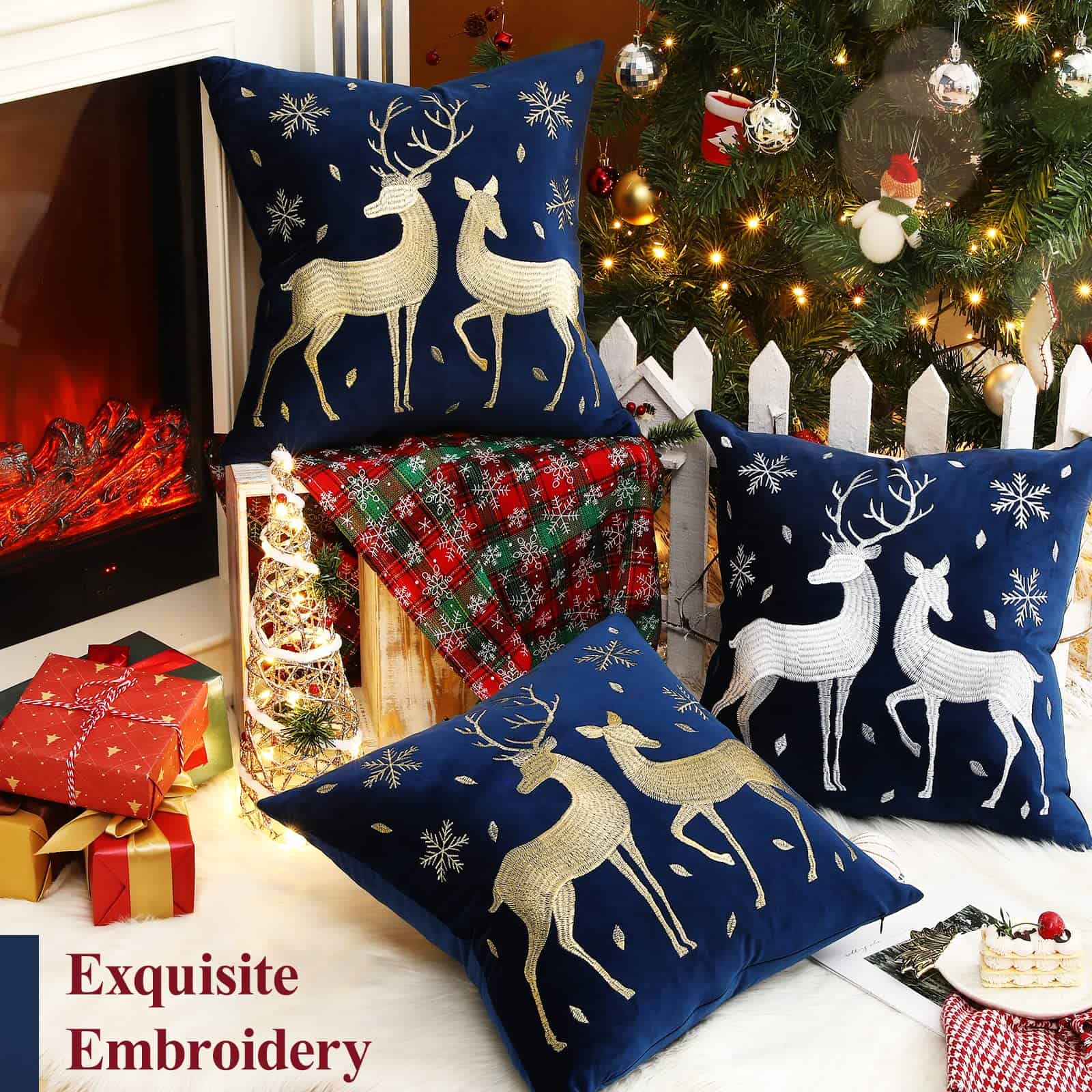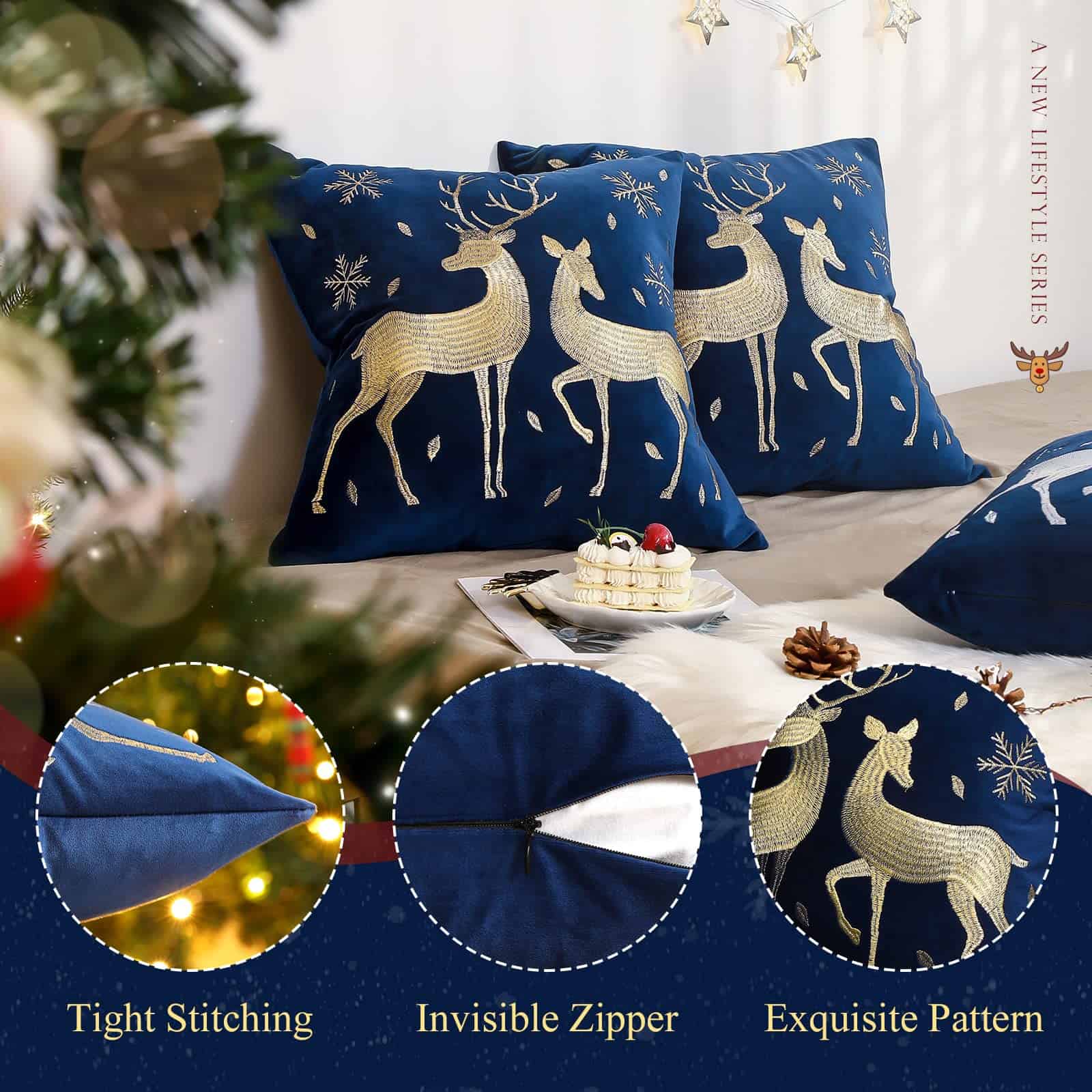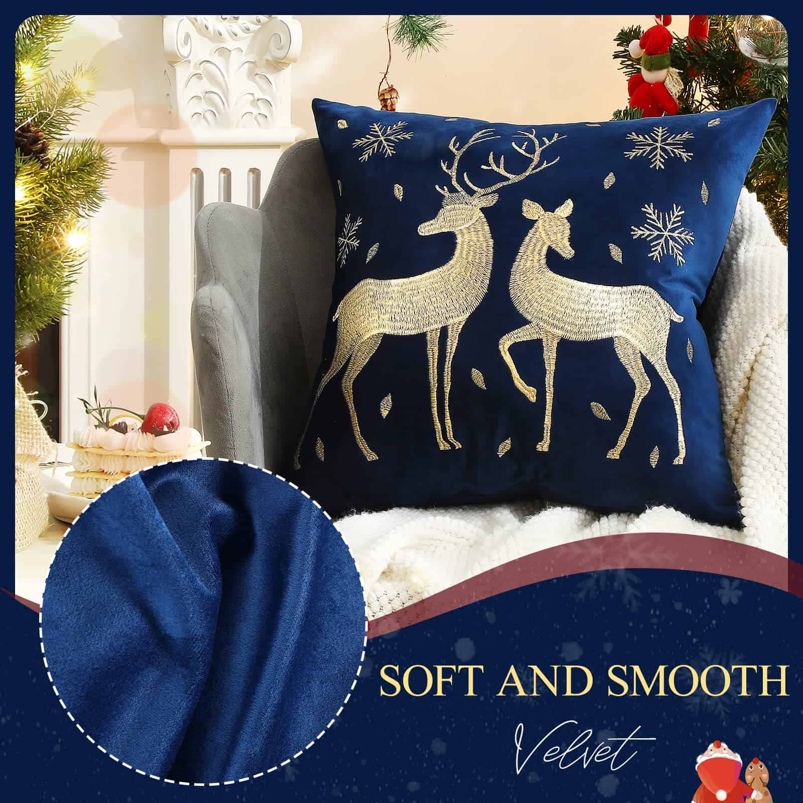 1. Elegante Bordado: Hecho de poliéster de alta calidad con textura de terciopelo, ultra suave, con tecnología de bordado, diseño exquisito y hermoso patrón de copos de nieve y ciervos, especialmente diseñado para Navidad y fiestas de vacaciones. Agregando estilo navideño a tu hogar, oficina u otro espacio vital.