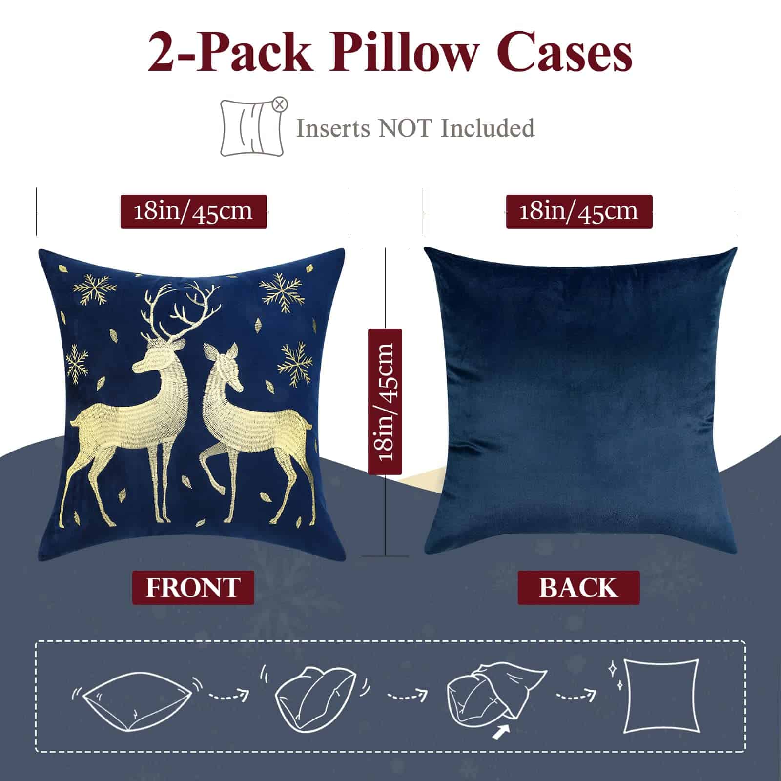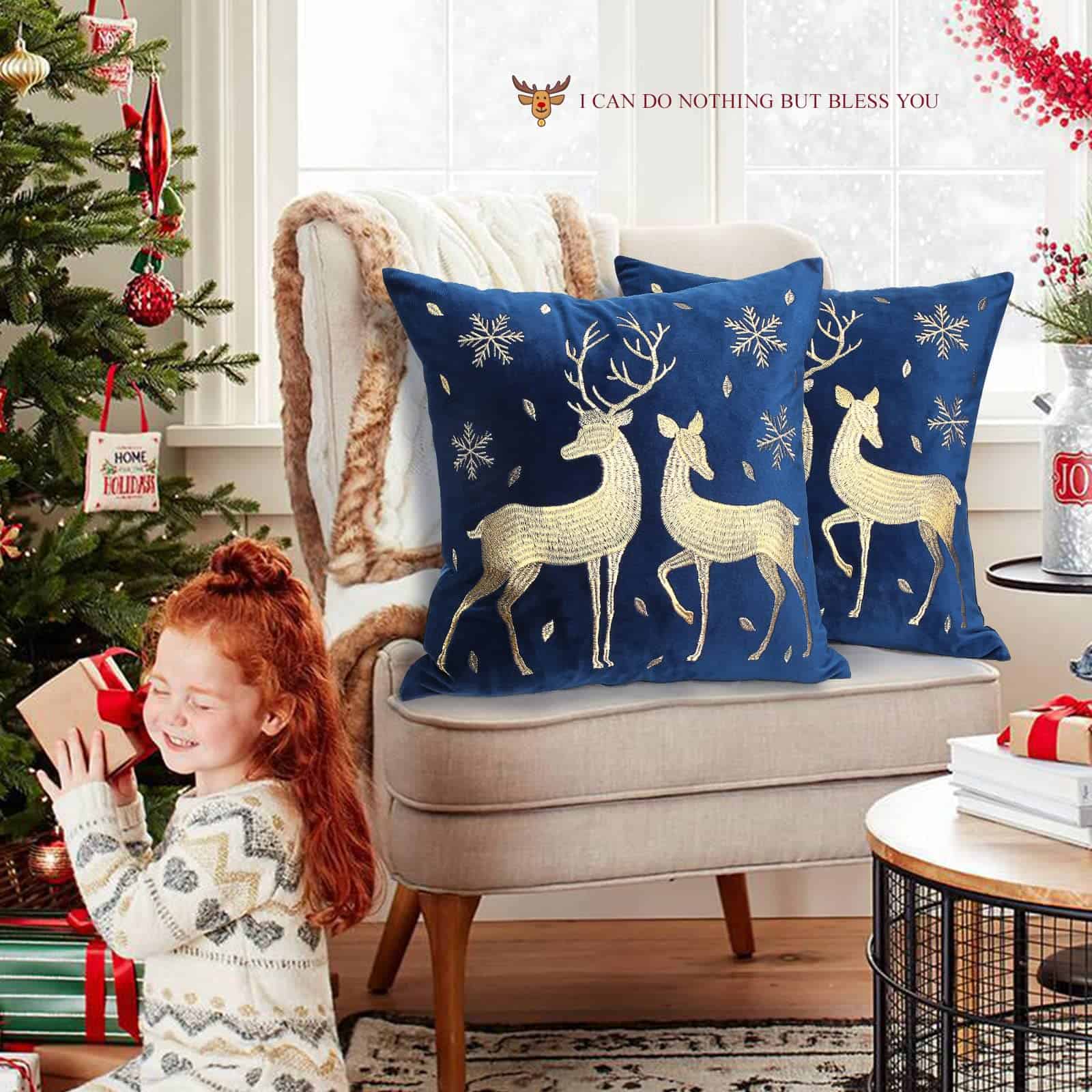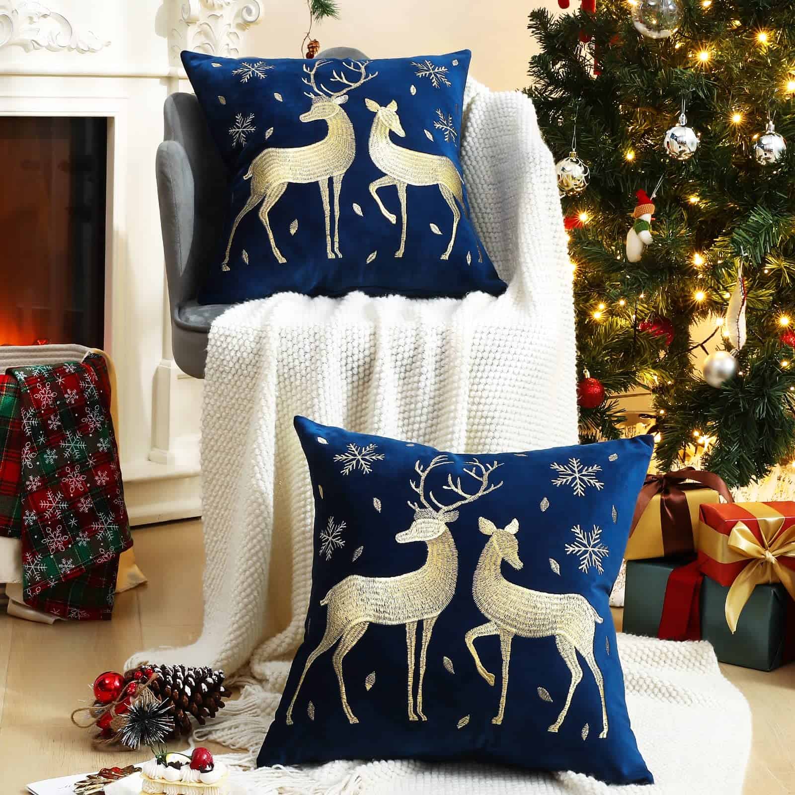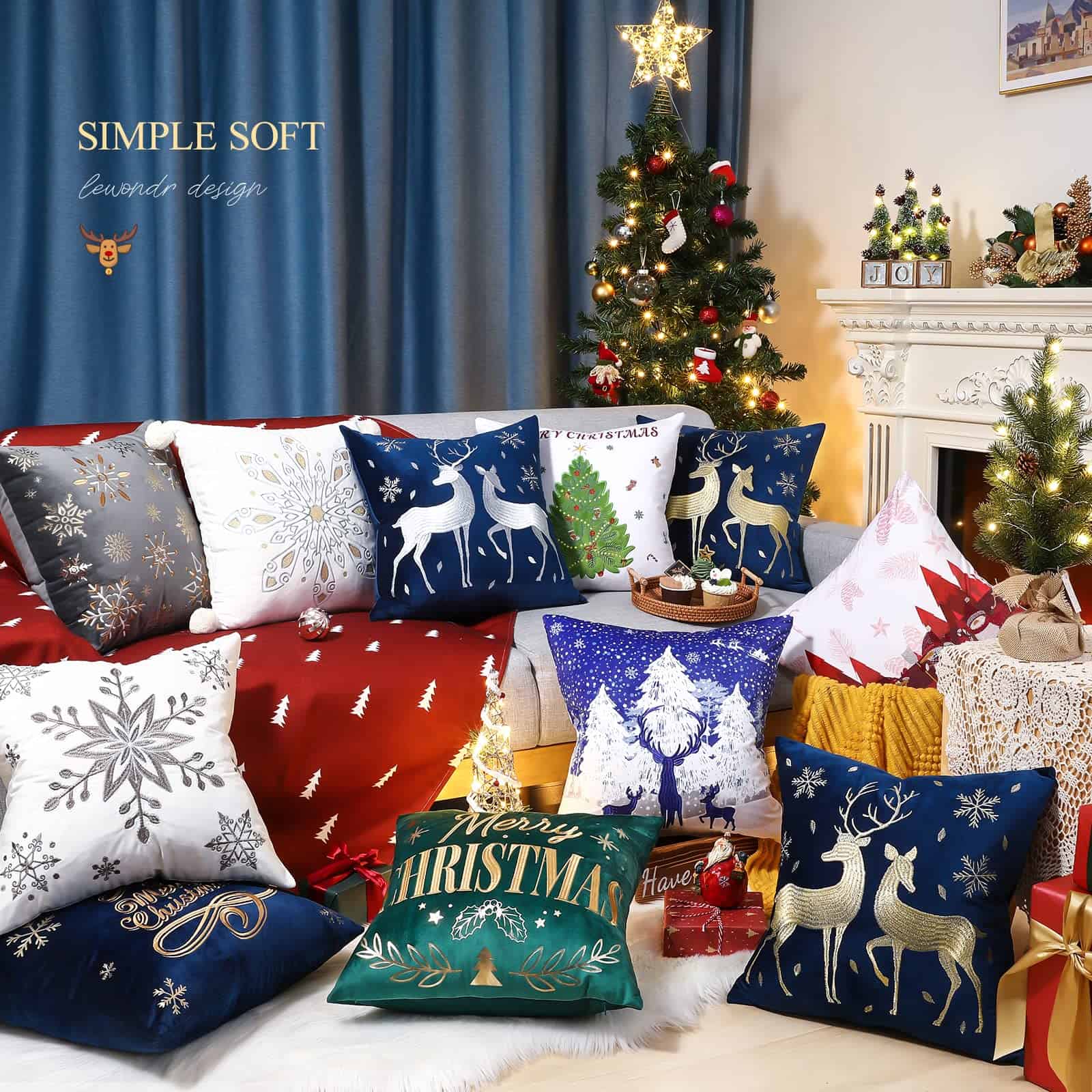 1. Elegante Bordado: Hecho de poliéster de alta calidad con textura de terciopelo, ultra suave, con tecnología de bordado, diseño exquisito y hermoso patrón de copos de nieve y ciervos, especialmente diseñado para Navidad y fiestas de vacaciones. Agregando estilo navideño a tu hogar, oficina u otro espacio vital.