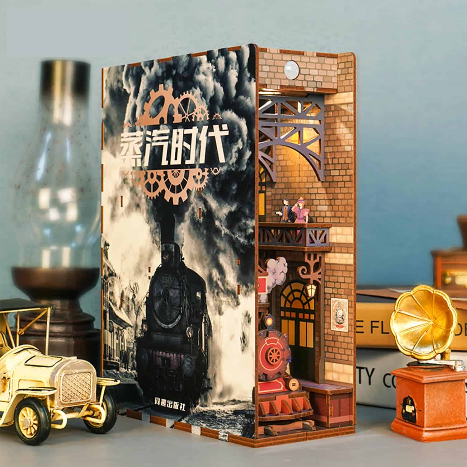 Soporte de libro extremadamente creativo e imaginativo, el material es madera de alta densidad respetuosa con el medio ambiente, impulsada por tres pilas tipo No. 5. Disfruta de la diversión de combinar ingeniería y estética