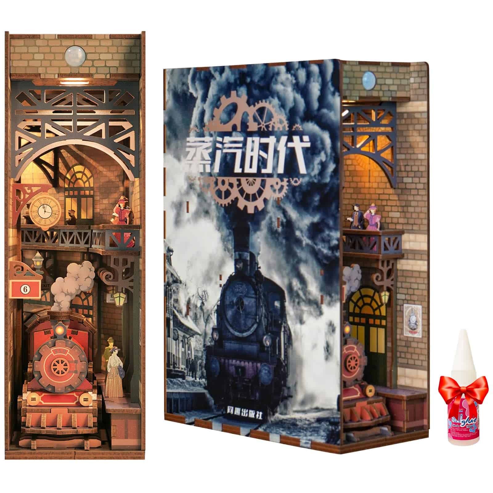Material: madera, tinta respetuosa con el medio ambiente, papel, resina, plástico, metal, juego de kit electrónico luminoso