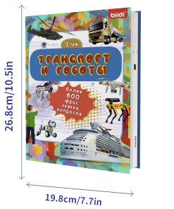 El libro parlante está diseñado para niños mayores de 2 años y contiene más de 600 sonidos. Los tipos de sonidos incluyen: efectos de sonido reales, palabras, frases, canciones, cuentos de hadas y sonidos de tareas interesantes que proporcionan a los niños formas interesantes de aprendizaje. El libro de Transporte y Robots introduce a los niños al transporte y diversos mecanismos e incluso incluye robots del futuro. Contenido principal: ciudad, aire, agua, ferrocarril, vehículos especiales, vehículos militares, vehículos de carga, equipos de construcción y robots…13 temas, y más de 190 palabras. El libro de juguete musical tiene 4 modos, marcados con iconos intuitivos brillantes, todas las páginas son interactivas. 1. Presiona el botón de inicio y luego haz clic en el círculo amarillo en la página para escuchar el efecto de sonido correspondiente y la pronunciación correcta de la palabra. Todas las letras en las palabras están resaltadas en diferentes colores, lo que te permite utilizar el método de enseñanza Montessori para aprender gramática. 2. El modo Aprender más permite a los niños comprender las características y conocimientos de las palabras en las que hacen clic y profundizar su comprensión. 3. El modo Jugar hace diversas preguntas sobre las palabras en las que el niño hace clic, verifica la corrección de las respuestas y recibe elogios por la respuesta correcta. 4. El Modo de Entretenimiento contiene 40 canciones infantiles, cuentos de hadas, rimas, poesías y talleres y es el juguete interactivo musical perfecto para niños y niñas. Este libro se puede encender antes de dormir y escuchar canciones infantiles y cuentos de hadas para ayudar a los bebés a dormir. El juguete musical interactivo es un regalo educativo para niños y niñas. ¡Con estos libros, aprender el mundo para bebés y niños pequeños es sorprendentemente fácil y divertido: los niños hacen clic fácilmente en las imágenes, escuchan y repiten los sonidos, y el proceso de aprendizaje siempre será simple, lleno de diversión y variedad! Esto brinda a los niños más conocimientos y desarrolla un amor por la vida. Los libros musicales estimulan un interés real por la lectura e inculcan el deseo de aprender a través de imágenes gráficas, sonidos vivos y contenido rico! Las 26 páginas del libro están hechas de papel resistente diseñado para un uso frecuente, por lo que los niños pueden jugar solos y con sus amigos, las páginas se mantendrán intactas y las imágenes no se desvanecerán. ¡El puerto de carga TYPE-C simple y conveniente es más confiable que USB y puede durar hasta 6 horas de uso continuo a volumen medio! El libro parlante infantil es un regalo original para niñas el 8 de marzo, un regalo festivo para niños el 23 de febrero y un gran regalo de Año Nuevo para niños. Un fantástico libro de juguete infantil desarrolla la imaginación, el habla, la memoria, el movimiento, aumenta el vocabulario de los niños y les enseña a interactuar de manera positiva con objetos y personas. Si estás buscando una idea de regalo festivo, un libro musical hará un gran regalo y mantendrá al niño y a sus invitados entretenidos con juegos divertidos por mucho tiempo. A medida que los niños crecen, los padres se enorgullecen de su éxito.