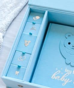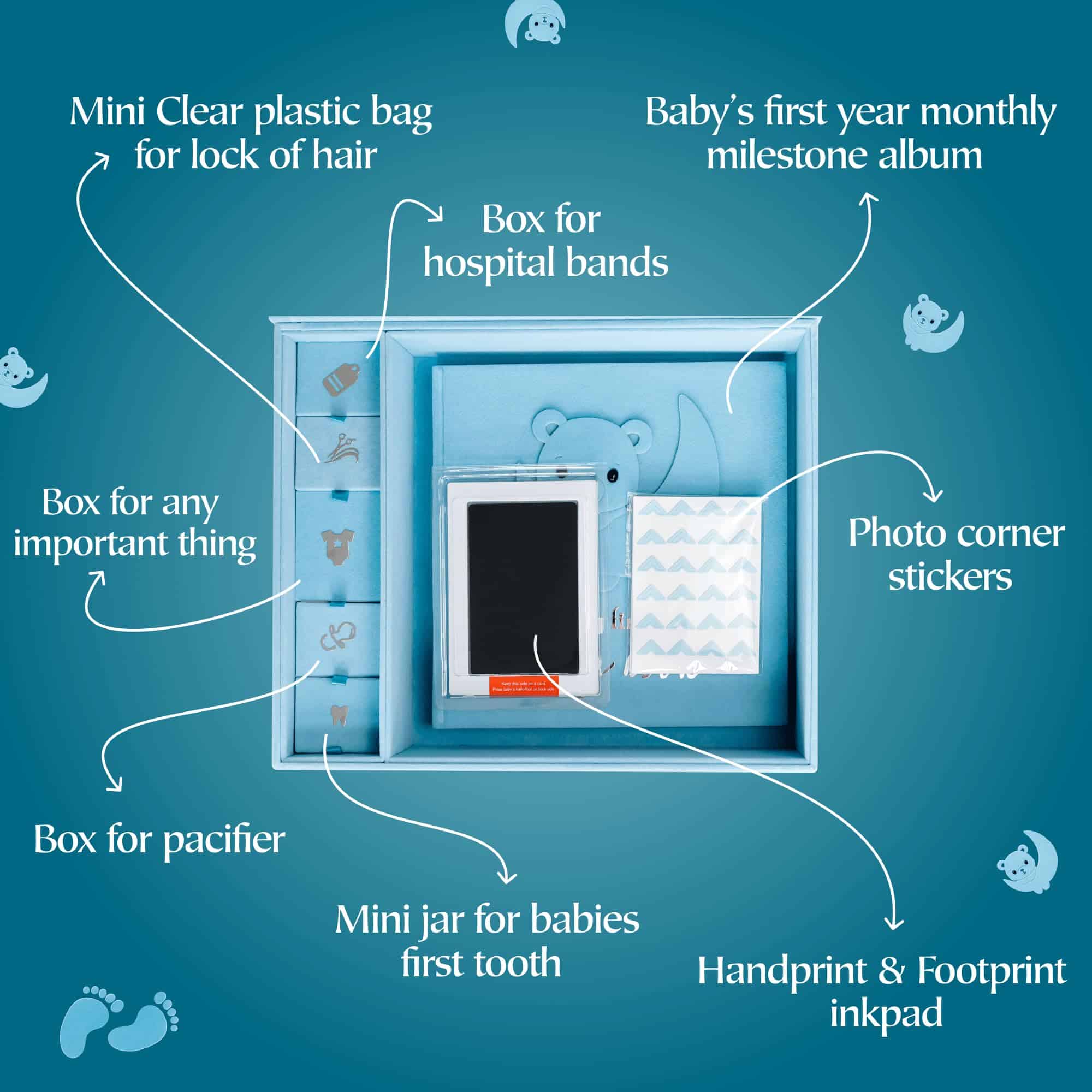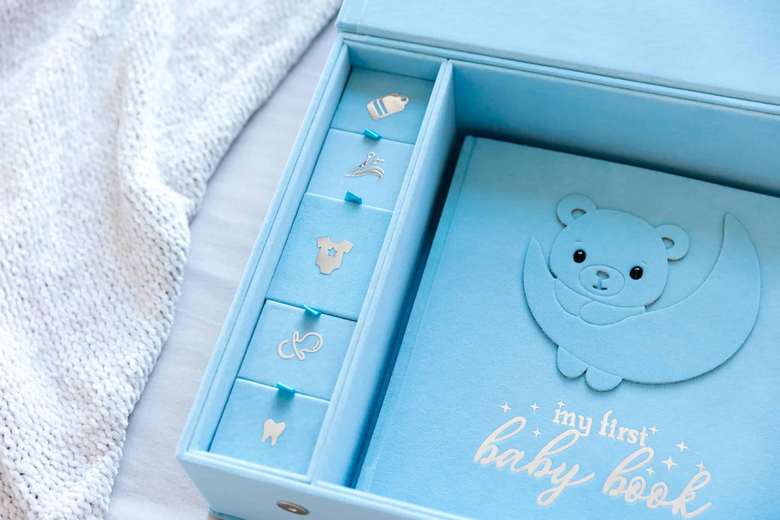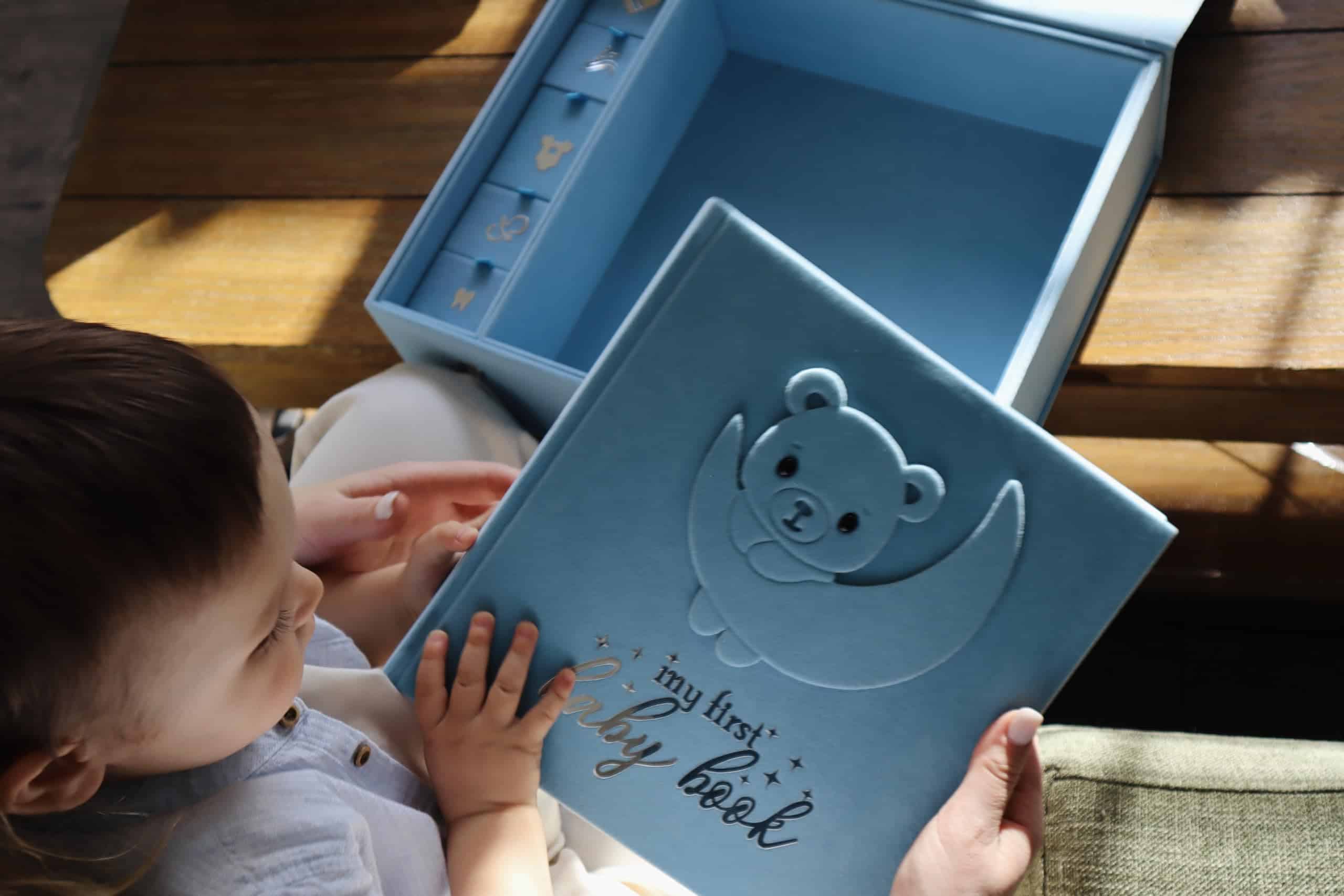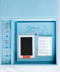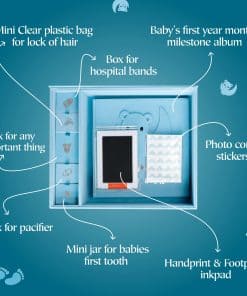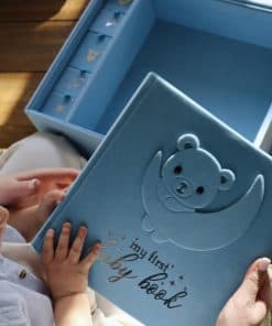 Libro de Recuerdos para Bebé Hecho a Mano, Álbum de Recortes y Fotografías con Caja de Recuerdos, Kit de Huellas de Manos y Pies incluido, Primer Año del Bebé, Diario, Para Recién Nacidos 0-12 Meses (Osito Niño, Azul): Este hermoso Libro de Recuerdos para Bebé de Little Growers es la forma perfecta de documentar y apreciar el primer año de vida de tu pequeño tesoro. Viene con una caja de recuerdos que te permite almacenar de manera segura objetos especiales como un mechón de cabello, pulseras del hospital y más. El kit de huellas de manos y pies del bebé te permite crear un recuerdo duradero con las adorables huellas de tu bebé. Además, este libro de recuerdos no solo es un álbum de recortes, también es un álbum fotográfico. Llénalo con tus fotos favoritas, leyendas y anécdotas, creando un registro visual y escrito inolvidable del viaje de tu bebé. Elaborado con materiales de alta calidad, este libro de recuerdos para bebés está diseñado para perdurar. Las páginas libres de ácido aseguran que tus fotos y recuerdos se conserven para las generaciones futuras. Desde la primera sonrisa hasta las primeras palabras, este libro está hecho para ayudarte a capturar cada detalle encantador del viaje de tu bebé. Ya sea que lo compres para ti mismo o como regalo, este paquete completo de recuerdos para bebés es una elección reflexiva, conmovedora y práctica que los padres realmente apreciarán.