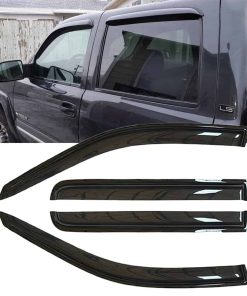 Lifeinfinity Deflector de Viento Original 4pcs, Viseras Exteriores de Lluvia, Deflectores para Ventanas Laterales de Techos Corredizos Compatibles con 2000-2006 Chevy/GMC/Cadillac Crew Cab Truck y Suv, algunos 2007 HD Classic Crew Cab 94355. Las Viseras de Ventana se adaptan a 02-06 Cadillac Escalade ESV/EXT únicamente; 02-06 Chevy Avalanche 1500/2500; 00-06 Chevy Suburban 1500/2500; 00-06 GMC Yukon XL 1500/2500 únicamente; 01-06 Chevy Silverado/GMC Sierra 1500/2500/3500/1500 HD/2500 HD únicamente en cabina de tripulación; 07 Silverado/Sierra 1500/3500/1500 HD/2500 HD solo en carrocería de cabina de tripulación. Nuestros deflectores de lluvia ayudan a mejorar la ventilación dentro y fuera del vehículo para reducir el empañamiento de espejos y ventanas, manteniendo una visibilidad clara para hacer los viajes seguros. Al aumentar la circulación del aire permiten que el calor interior escape, previniendo la necesidad de utilizar el aire acondicionado y ahorrando combustible. Estilo de Montaje Exterior, Instalación Fácil de Pelar y Pegar. No se Requiere Cortar ni Taladrar (Se pega en la puerta y encima de las ventanas. No es de Estilo de Montaje en Canal). Puede conducir con comodidad con nuestros deflectores de ventanas laterales, sin preocuparse por el ruido del viento, la nieve fría, las molestas salpicaduras de lluvia o el sol abrasador. Nuestro Deflector de Vent depende de ninguna manera de una calidad premium reforzada de acrílico resistente y a prueba de golpes, no se doblará, romperá ni agrietará; el diseño flexible de color humo oscuro es elegido principalmente para la protección solar, también mejorando la apariencia de su vehículo precioso!