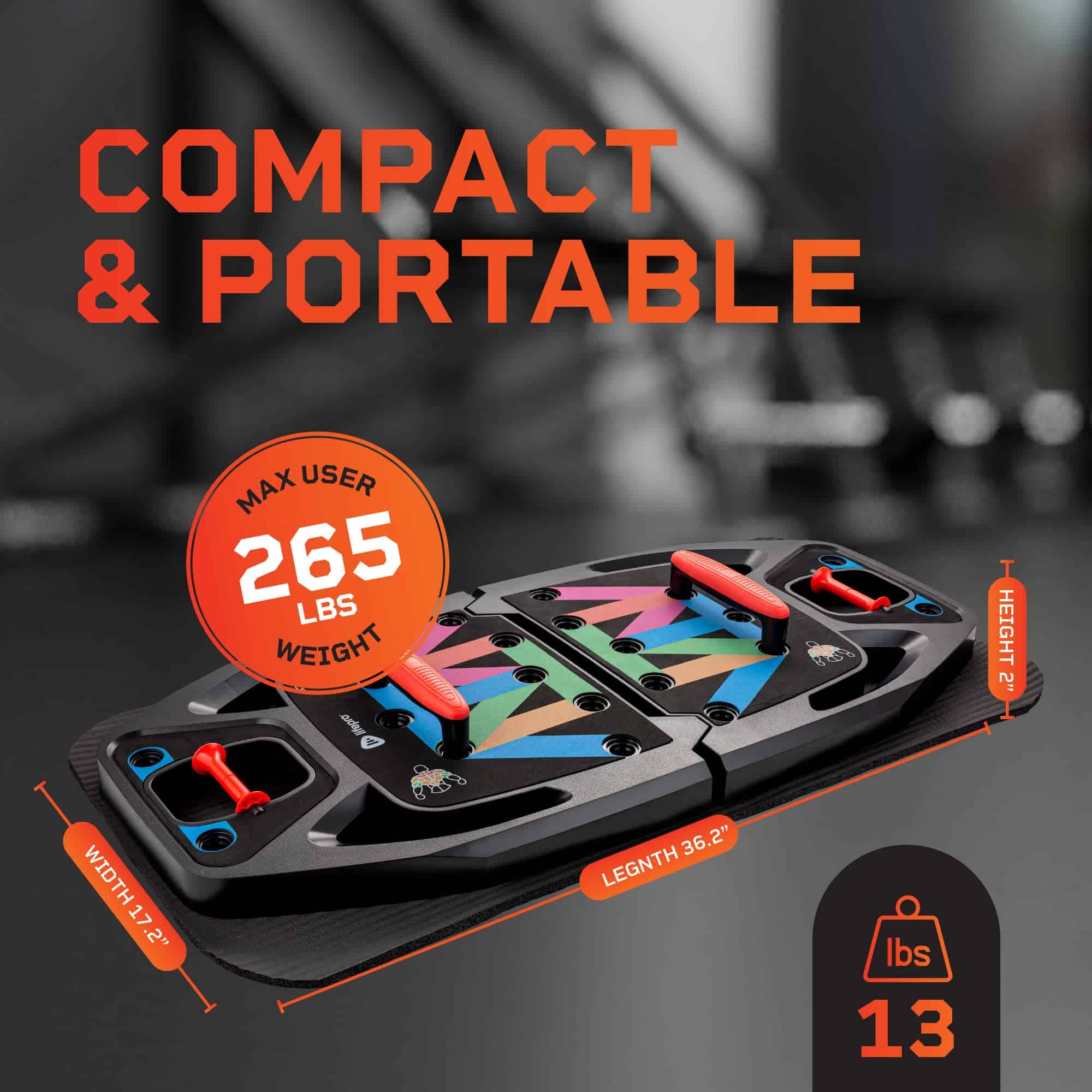 4. CONSTRUYA FUERZA EN CUALQUIER LUGAR: El fitness portátil es fitness innovador. Con un peso de solo 13 lbs y midiendo 36.2 x 17.2 x 2.0 pulgadas, este gimnasio de ejercicio portátil, que incluye una funda de transporte, es lo suficientemente pequeño como para caber en cualquier lugar para un almacenamiento y viaje fáciles.