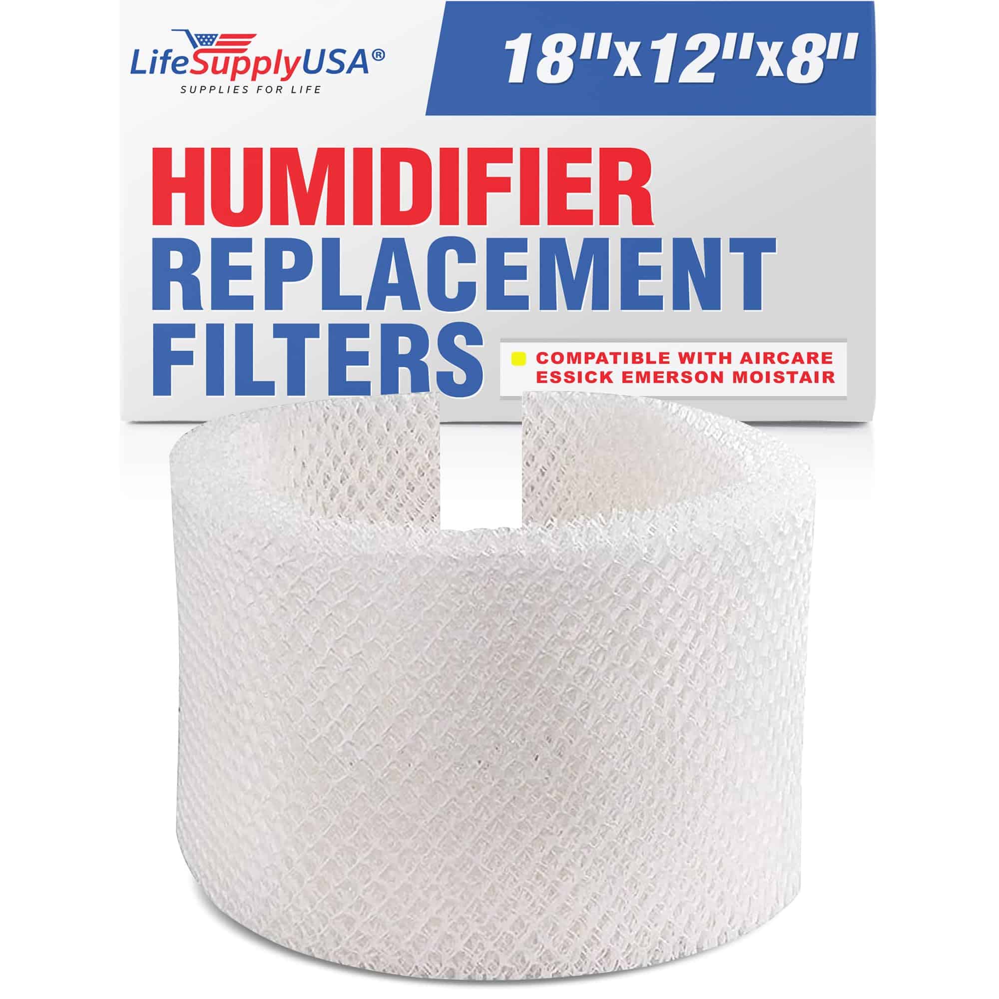 LifeSupplyUSA ofrece un filtro de humidificador de repuesto compatible con los modelos MAF1 Emerson MA-0950, Essick Air MAF-1, Kenmore 14906 y Moistair MA1200. Este filtro brinda una extensa compatibilidad para una amplia gama de humidificadores.