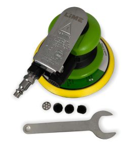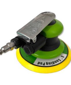 Lijadora orbital de palma de gancho y lazo de 6″ para automóviles. Diseñada para pintores personalizados y talleres de carrocería automotriz. Ligera de grado automotriz. Con el regulador incorporado resistente, puedes controlar fácilmente la velocidad para diferentes situaciones de trabajo. El paquete contiene: (1) Lijadora de doble acción (1) Almohadilla de lijado de gancho y lazo de 6″ (1) Llave inglesa (3) Núcleos de silenciador de repuesto (1) Placa de silenciador de repuesto.