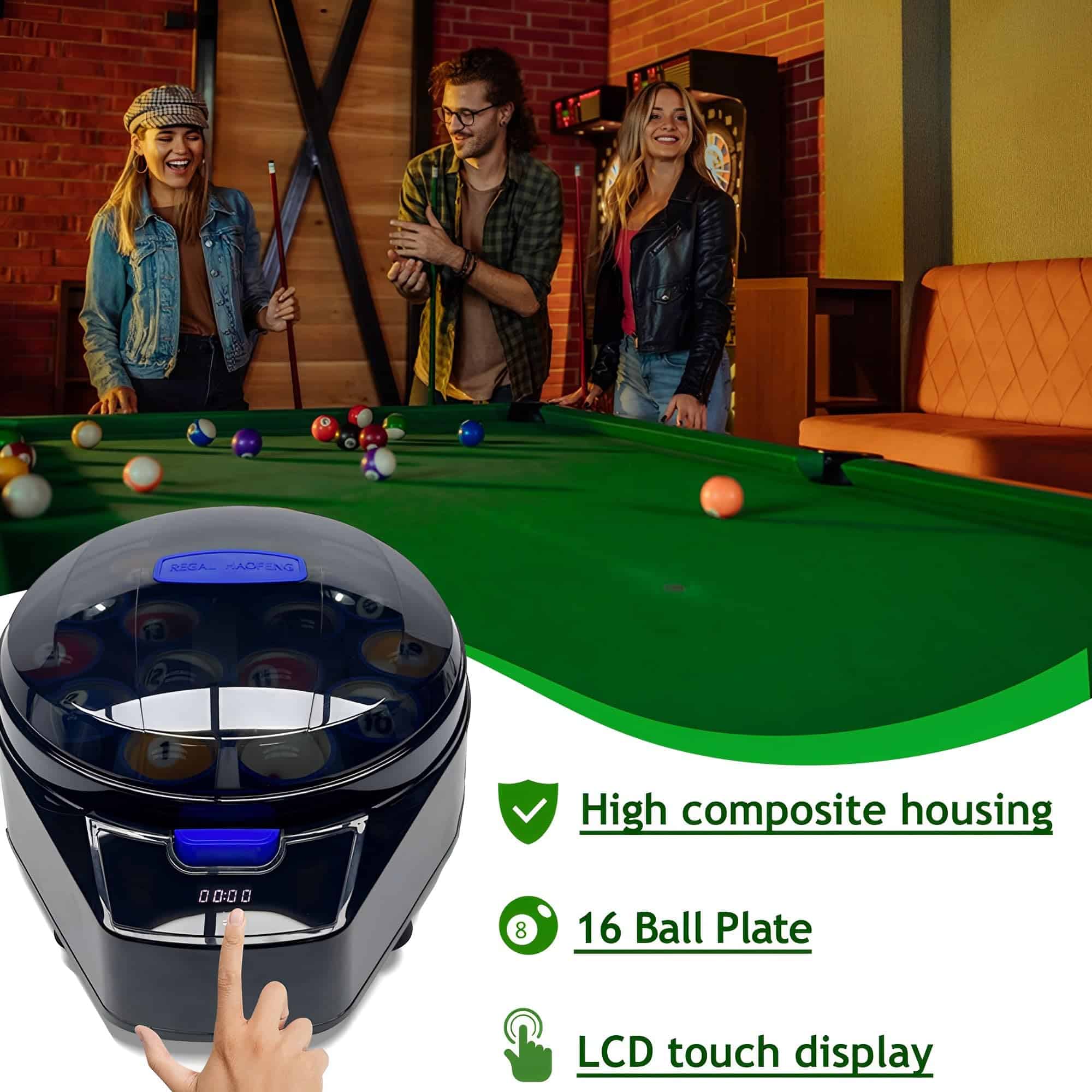 1. Diseño Optimizado: Este Limpia Bolas de Billar cuenta con una pantalla táctil LCD fácil de usar, lo que facilita la operación y gestión de tareas de limpieza y pulido.