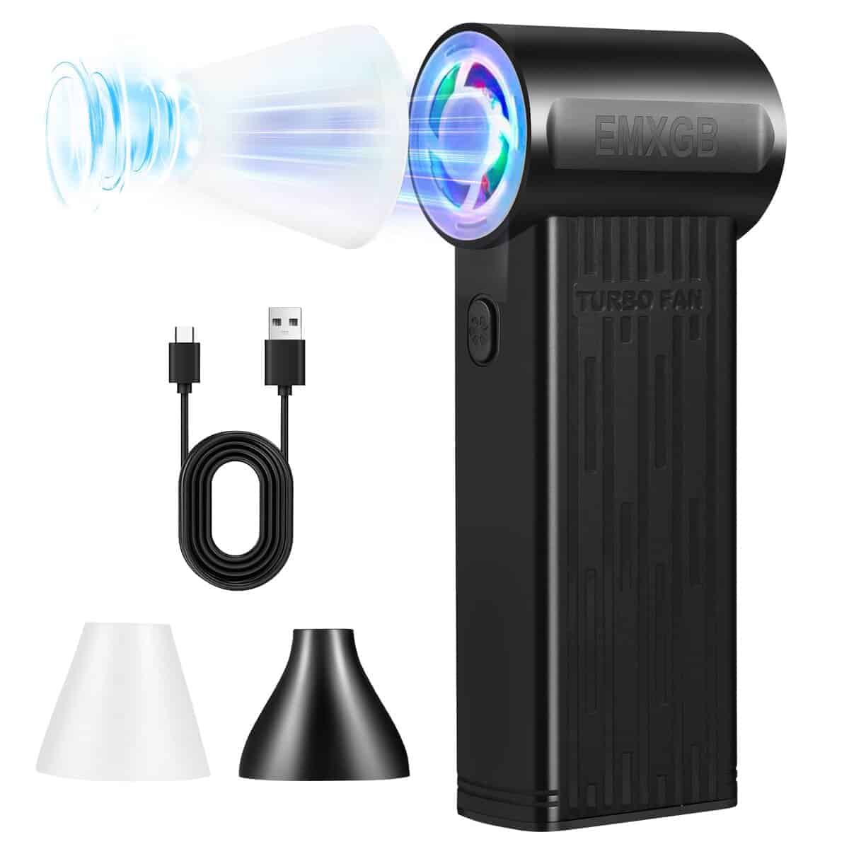 3. Mini soplador de aire: fácil de transportar, cabe en el bolsillo, el ventilador solo mide 1.6 x 3.8 x 5.8 pulgadas, 0.68 libras, el soplador de aire cabe en tu bolsillo sin ningún esfuerzo y es fácil de llevar y usar tanto en interiores como en exteriores. Mini soplador de aire Ligero y experiencia de usuario más cómoda.