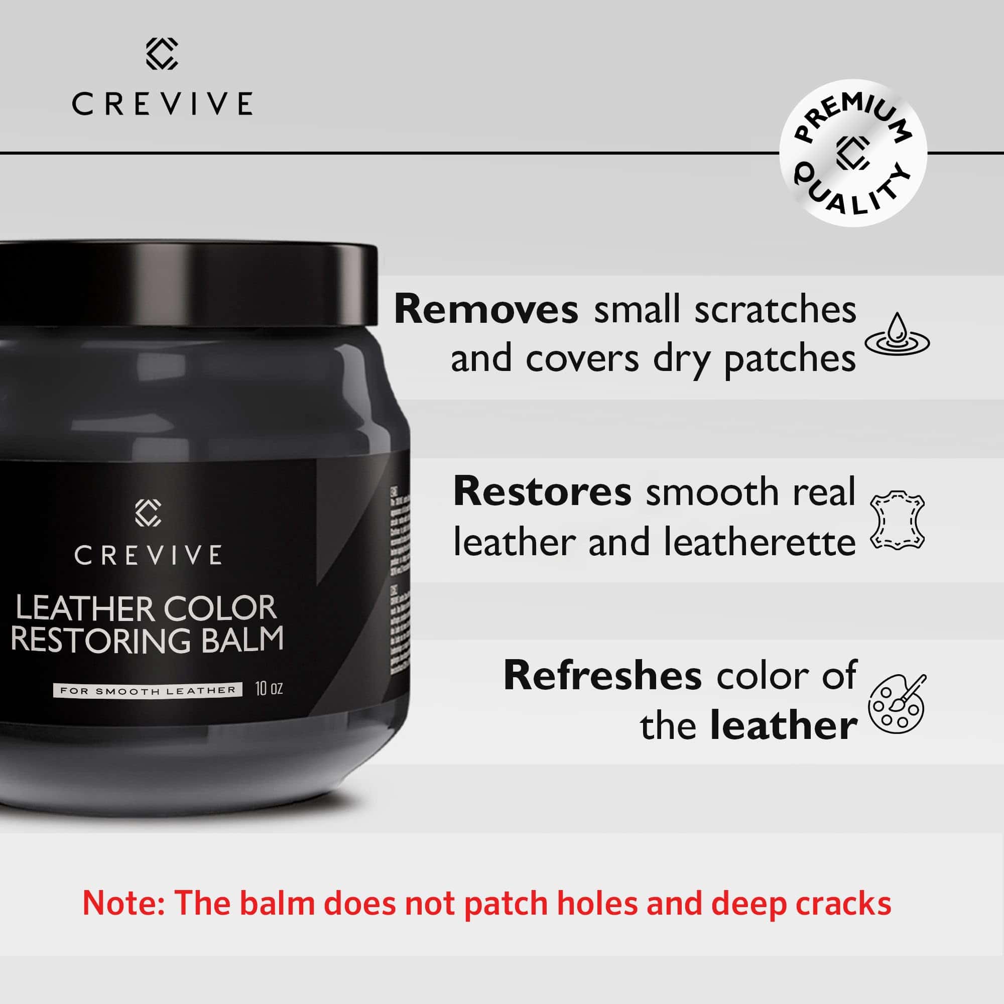 2. SOSTENIBLE – Ahorre dinero en la compra de un nuevo sofá de cuero. Con la reparación de arañazos de cuero y el reparador de cuero, los artículos de cuero se mantienen en buenas condiciones durante mucho tiempo. La crema reparadora de cuero CREVIVE es el rejuvenecedor ideal!.