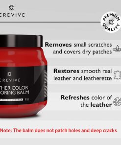 5. TINTE DE CUERO – Ofrecemos el Bálsamo Restaurador de Color de Cuero CREVIVE en 13 colores diferentes (rojo). Para obtener mejores resultados recomendamos nuestro paquete que incluye un limpiador de cuero, restaurador de cuero, esponja y paño. Si tiene alguna pregunta, estamos ahí para usted las 24 horas del día, los 7 días de la semana.
