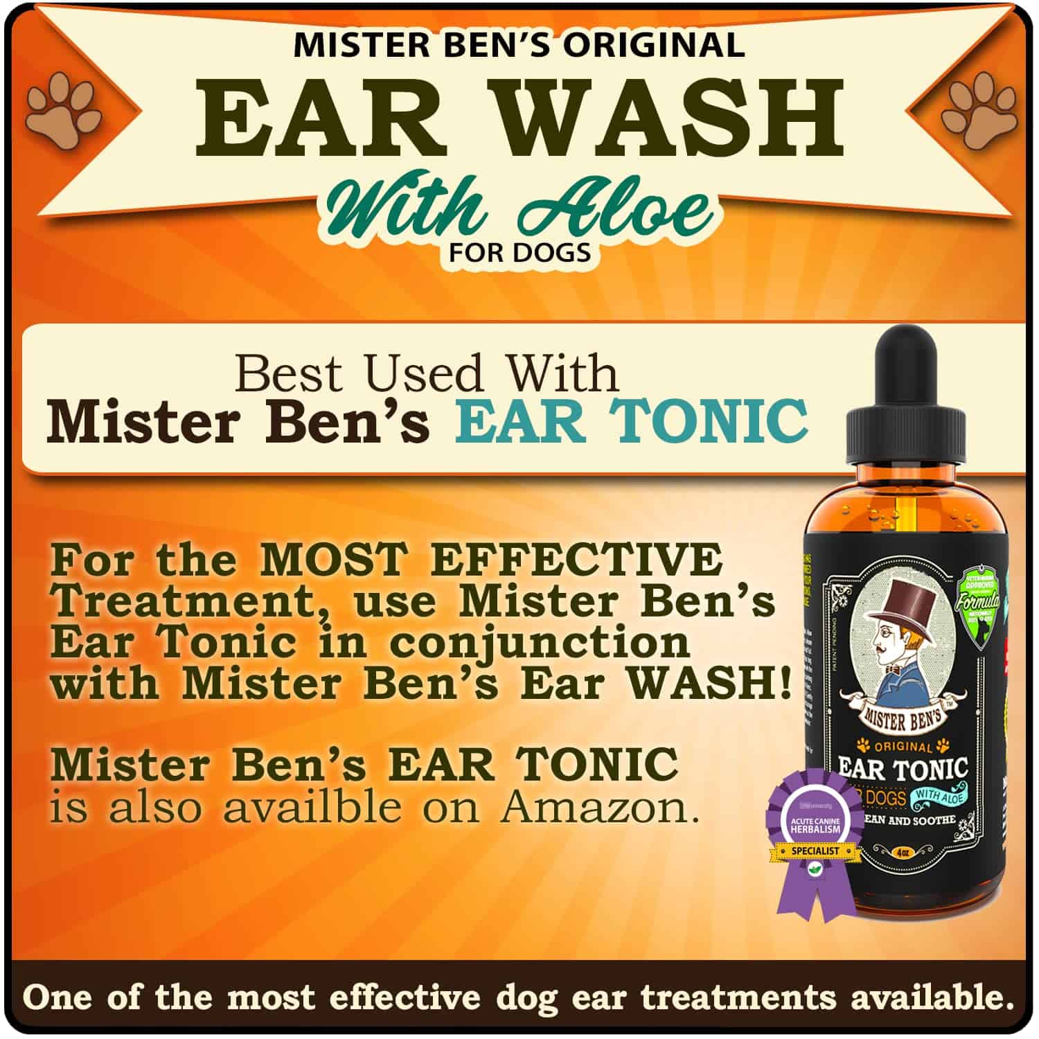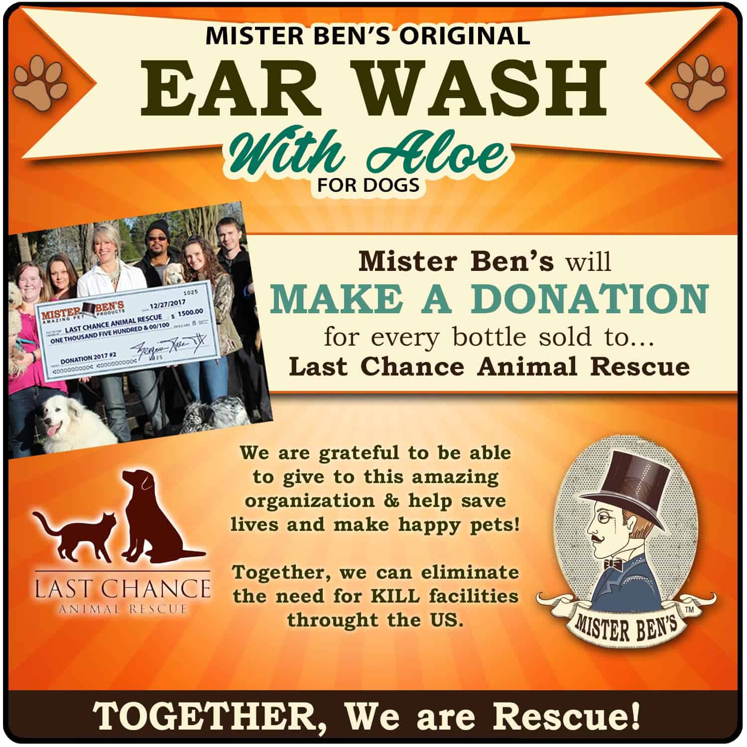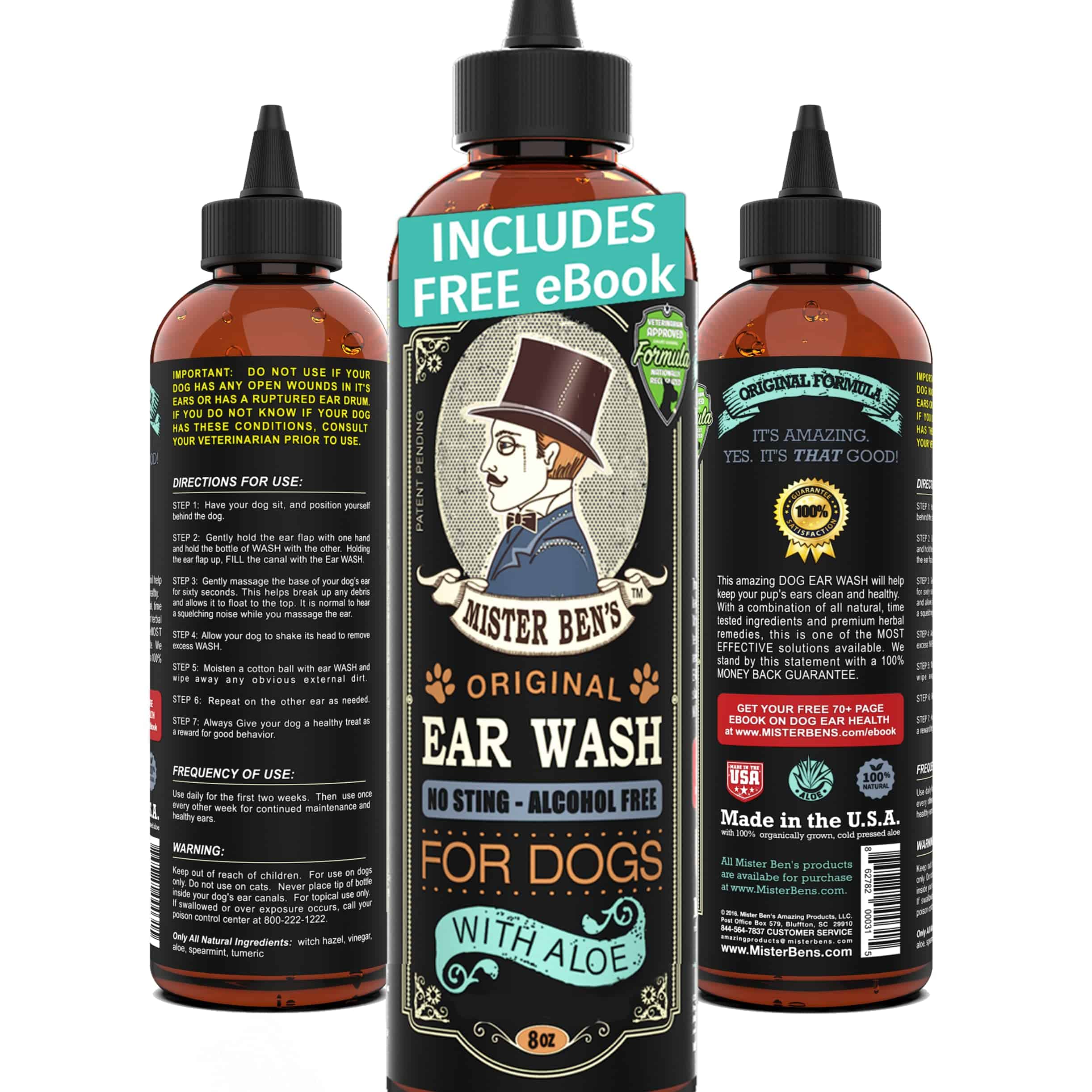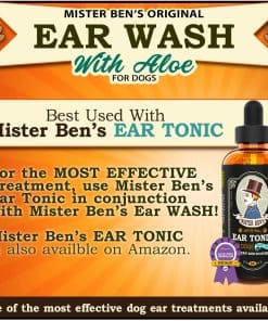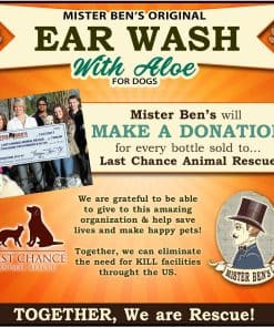 ¡Es INCREÍBLE! Sí. Es ESO bueno. ¡ENVÍO RÁPIDO! Mister Ben’s Original Ear Wash con Aloe para Perros – Una botella de 8 oz. con un eBook GRATIS sobre la salud del oído de su perro. ¡Las infecciones del oído en perros pueden ser muy difíciles de tratar! La mayoría de los lavados y limpiadores de oídos para perros que se encuentran en las estanterías de los veterinarios son caros e ineficaces. A menudo son incapaces de combatir la infección y no están disponibles para su uso a largo plazo para ayudarlo a mantener la salud del oído de su perro. ¡ESE NO ES el caso con el Lavado de Oídos con Aloe para Perros de Mister Ben! ¡MEJOR USADO CON EL TÓNICO ORIGINAL CON ALOE PARA OÍDOS DE PERROS DE MISTER BEN! El Lavado de Oídos con Aloe para Perros de Mister Ben es una de las soluciones más efectivas para limpiar los oídos de su perro, tratar olores desagradables e infecciones de oído en perros. Mister Ben’s combate las 4 causas raíces de las infecciones de perros y otitis de perros, olores, dolor e irritación. El Lavado de Oídos con Aloe Original de Mister Ben para Perros está hecho con ingredientes de alta calidad que incluyen aloe orgánico prensado en frío al 100%. Nuestra fórmula del producto se ha utilizado durante décadas y ha demostrado ofrecer resultados increíblemente RÁPIDOS en el tratamiento de las infecciones de oído en perros. ¡Excelente para uso a largo plazo! Su perro tendrá una vida sin problemas de oídos continuos y dolorosos. ¡Con cada unidad, recibirá un eBook GRATUITO sobre la salud del oído de su perro y se donará a LAST CHANCE ANIMAL RESCUE! Además de nuestra Garantía para el Comprador, ¡Mister Ben’s ofrece una Garantía de Efectividad del 100%! Si no ve mejoras drásticas en los oídos de su perro dentro de una semana, ¡devuelva la parte restante del Lavado para obtener un REEMBOLSO COMPLETO!