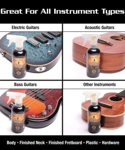 Nada se compara con una guitarra limpia. El Detailer de MusicNomad tiene todo lo que necesitas para cuidar tu guitarra en un solo producto fácil de rociar y limpiar. Funciona excelentemente en acabados mate/satinados y brillantes. Con un solo rociado de nuestro atomizador, limpia huellas dactilares, polvo y manchas en el acabado de tu guitarra como ningún otro producto. Ya sea que estés limpiando tu guitarra eléctrica, guitarra acústica, guitarra bass o ukelele, acabamos de hacer más fácil tu cuidado y mantenimiento. Nuestra fórmula especial está infusionada con realzadores de brillo y protectores UV para devolverle a tu guitarra su aspecto original de sala de exhibición. Nuestros agentes antiestáticos ayudan a reducir que el polvo se adhiera a tu guitarra. Pequeño en tamaño pero grande en resultados, puedes llevarlo a todas partes e incluso huele genial.