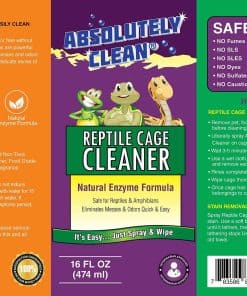 El Limpiador y Desodorizante de Terrarios para Reptiles y Anfibios Absolutely Clean utiliza el poder de limpieza de enzimas naturales para mantener el terrario o jaula de tus mascotas limpio y libre de olores. Nuestras enzimas naturales son lo suficientemente potentes para limpiar los peores desechos y olores de tus reptiles, pero lo suficientemente suaves como para no molestar su delicado sentido del olfato. Dedica más tiempo a disfrutar de tus mascotas exóticas y menos tiempo limpiando con el Limpiador y Desodorizante de Terrarios para Reptiles y Anfibios Absolutely Clean.