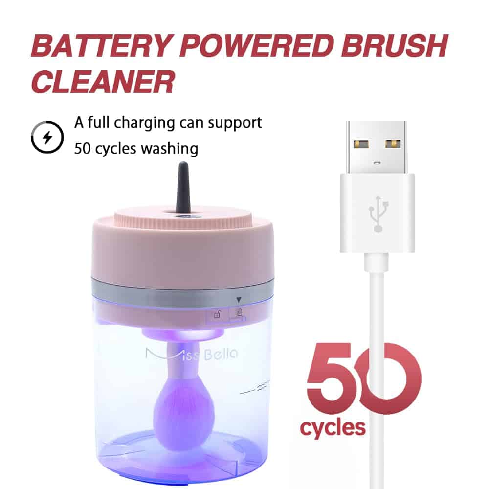 2. Máquina compacta para la limpieza de brochas de maquillaje Esta máquina limpiadora de brochas cosméticas pesa solo 1.3 libras, ultra compacta y liviana. Su diseño inalámbrico te permite usarla en cualquier momento y lugar. Es conveniente de usar y no es necesario estar conectado todo el tiempo en comparación con los que tienen cable.