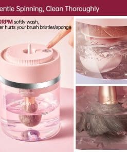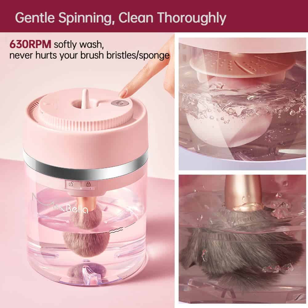 1. Limpiador automático de brochas de maquillaje y esponjas Este lavador de brochas te libera del lavado a mano. Con solo presionar un botón, lavará y secará tus brochas en minutos, realmente un ahorro de tiempo para las chicas. A diferencia de otros limpiadores de brochas de maquillaje, esta máquina puede lavar automáticamente, no necesitas sostener manualmente las brochas todo el tiempo.