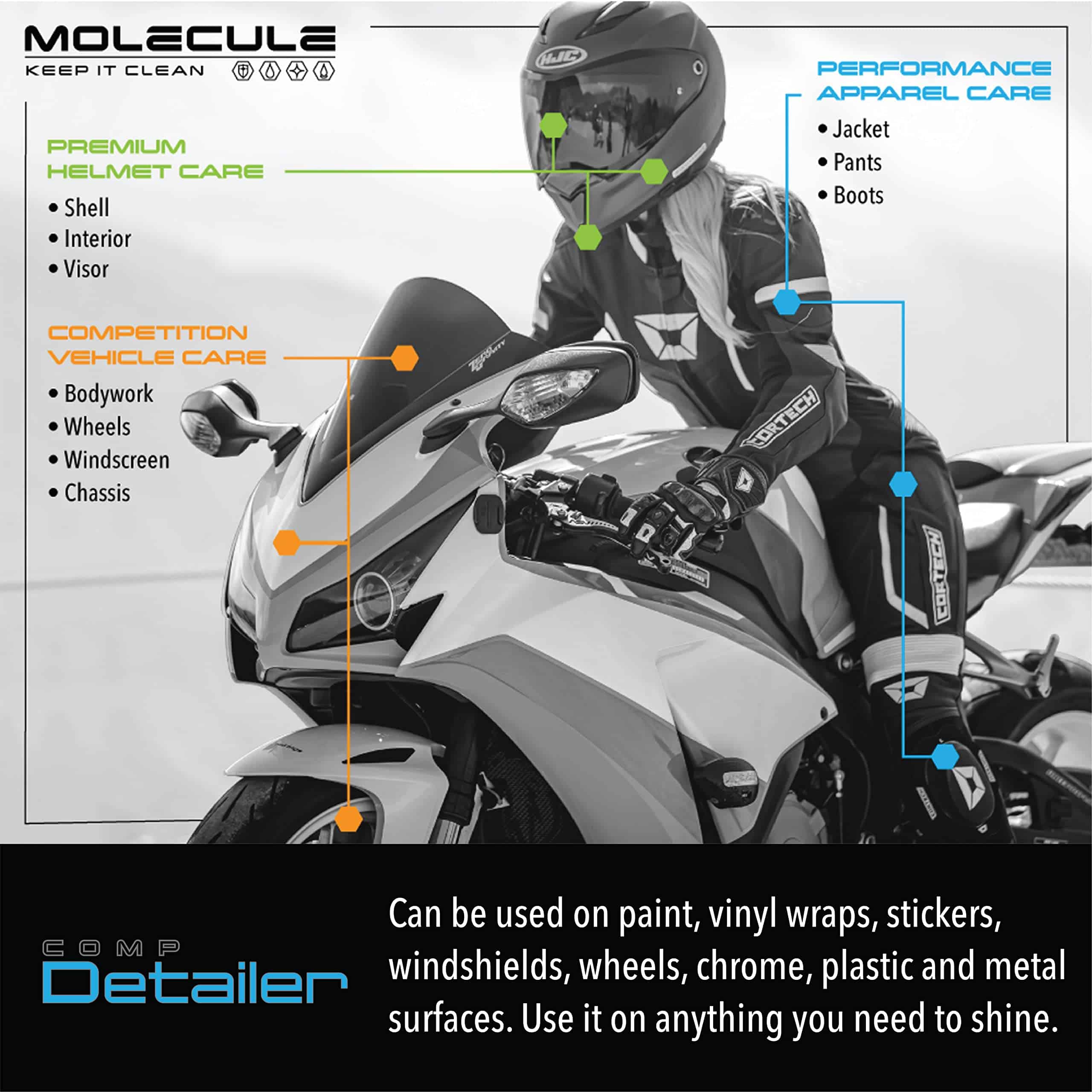 Limpieza de competición Molecule es la solución perfecta para mantener tu vehículo impecable. Este galón de solución de pulverización y limpieza es resistente a la suciedad y limpia y pule al mismo tiempo. Elimina de forma segura marcas ligeras de caucho, aceites, suciedad y grime. El siloxano reactivo se adhiere a la superficie para pulir sin una sensación pegajosa, garantizando que no quede ninguna raya. Reduce la acumulación de suciedad, grime y grasa superficial, dejando tu vehículo impecable. Simplemente pulveriza y limpia, ¡es así de fácil!