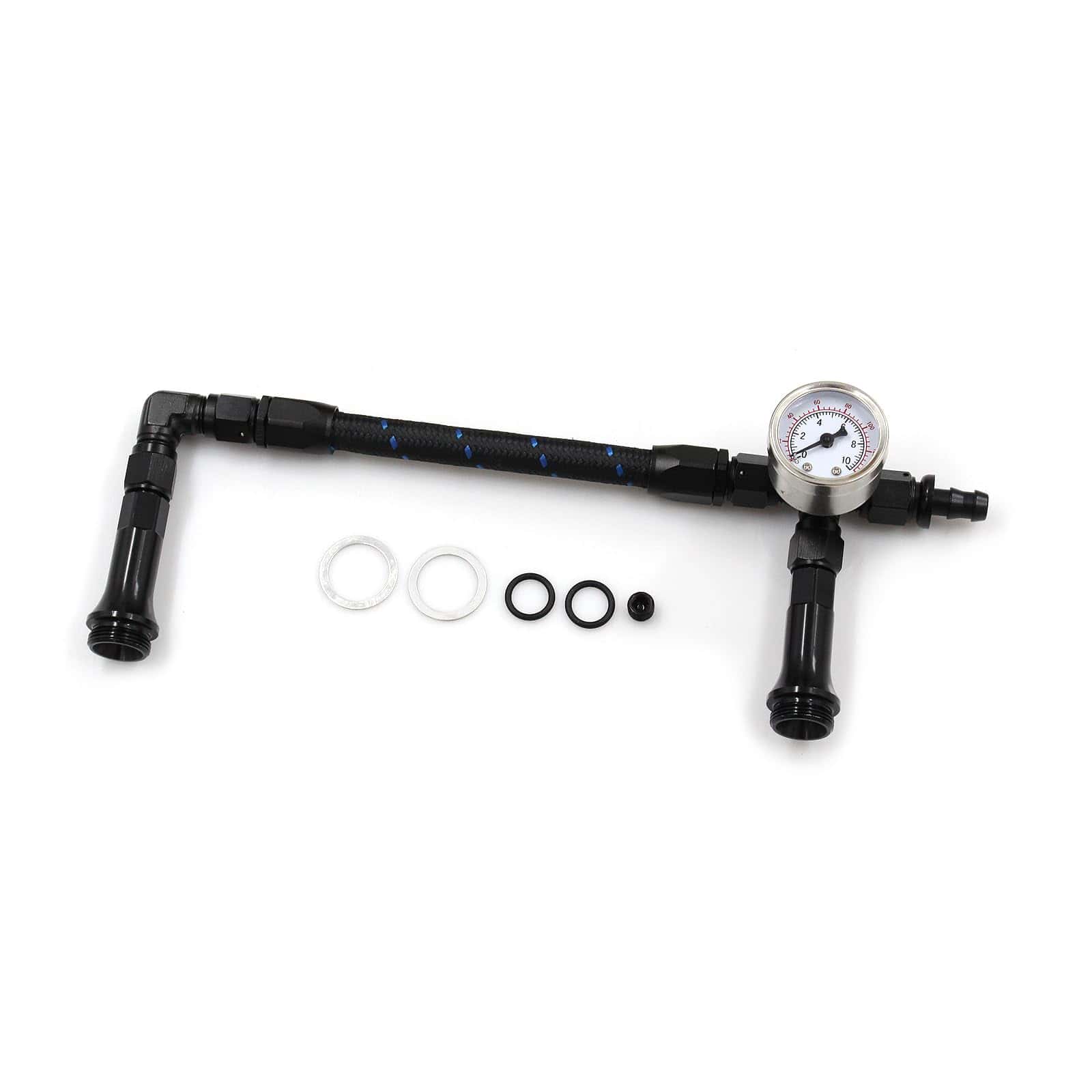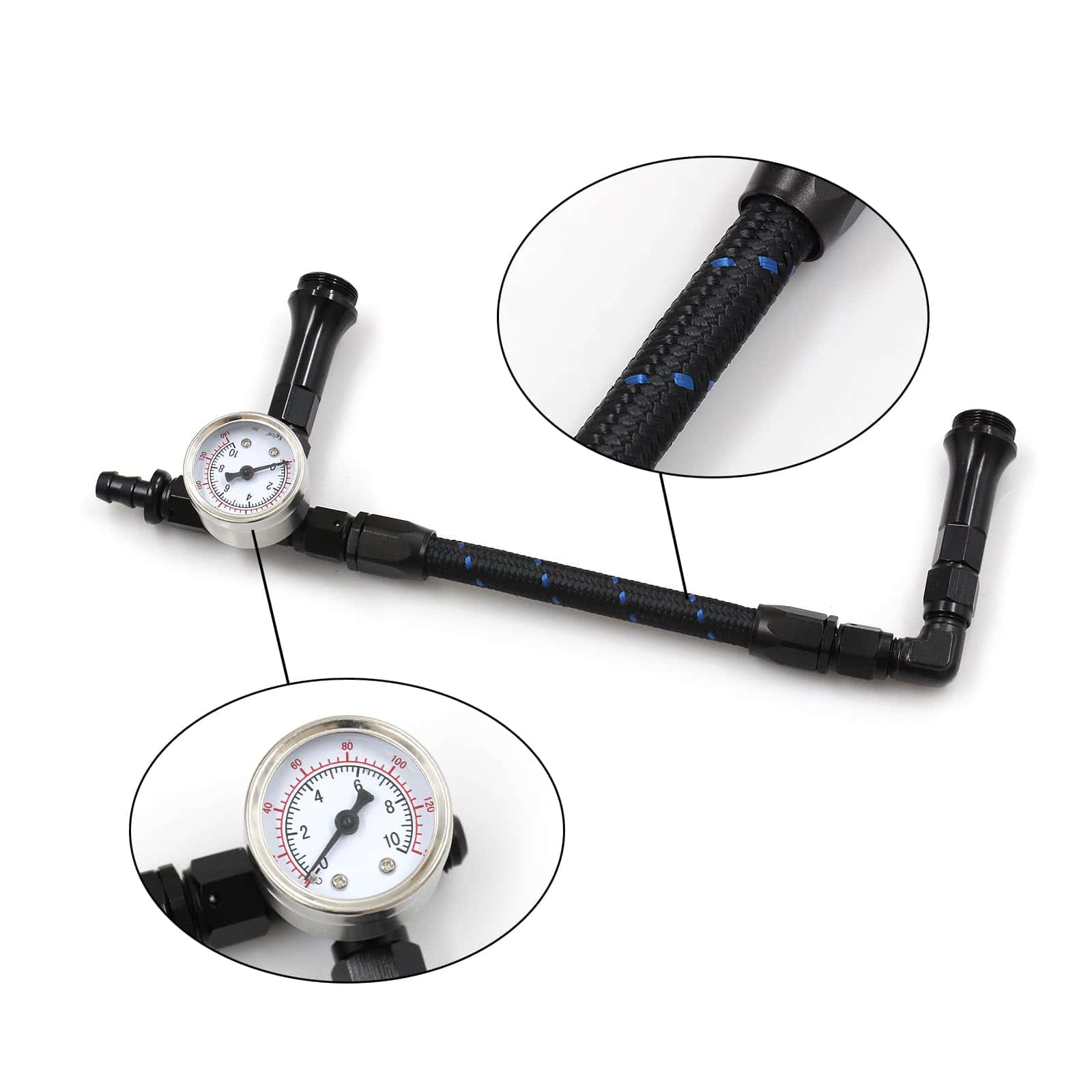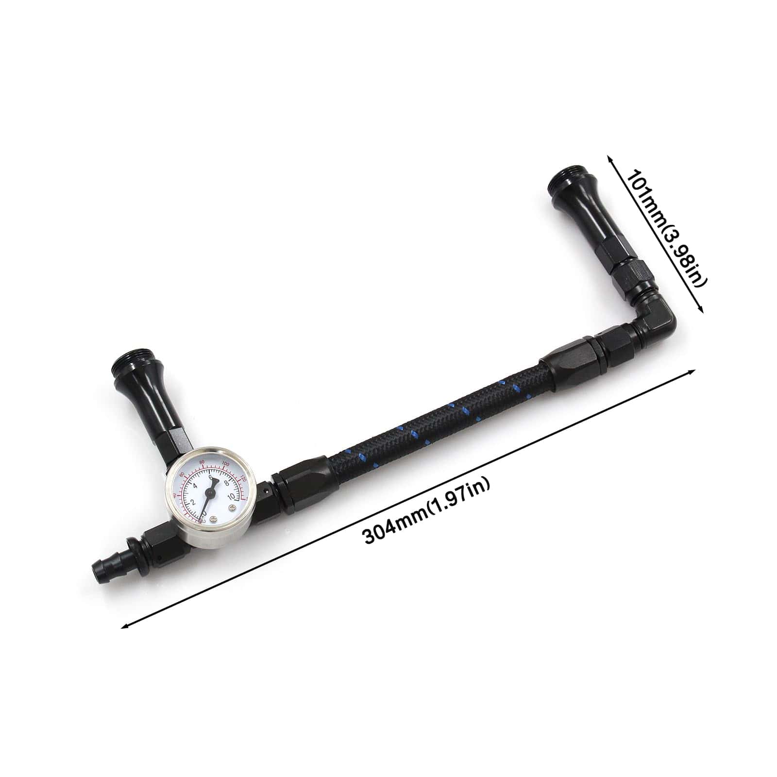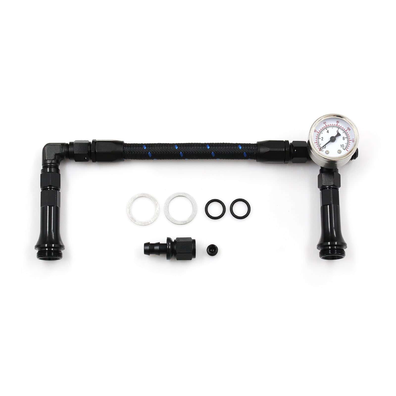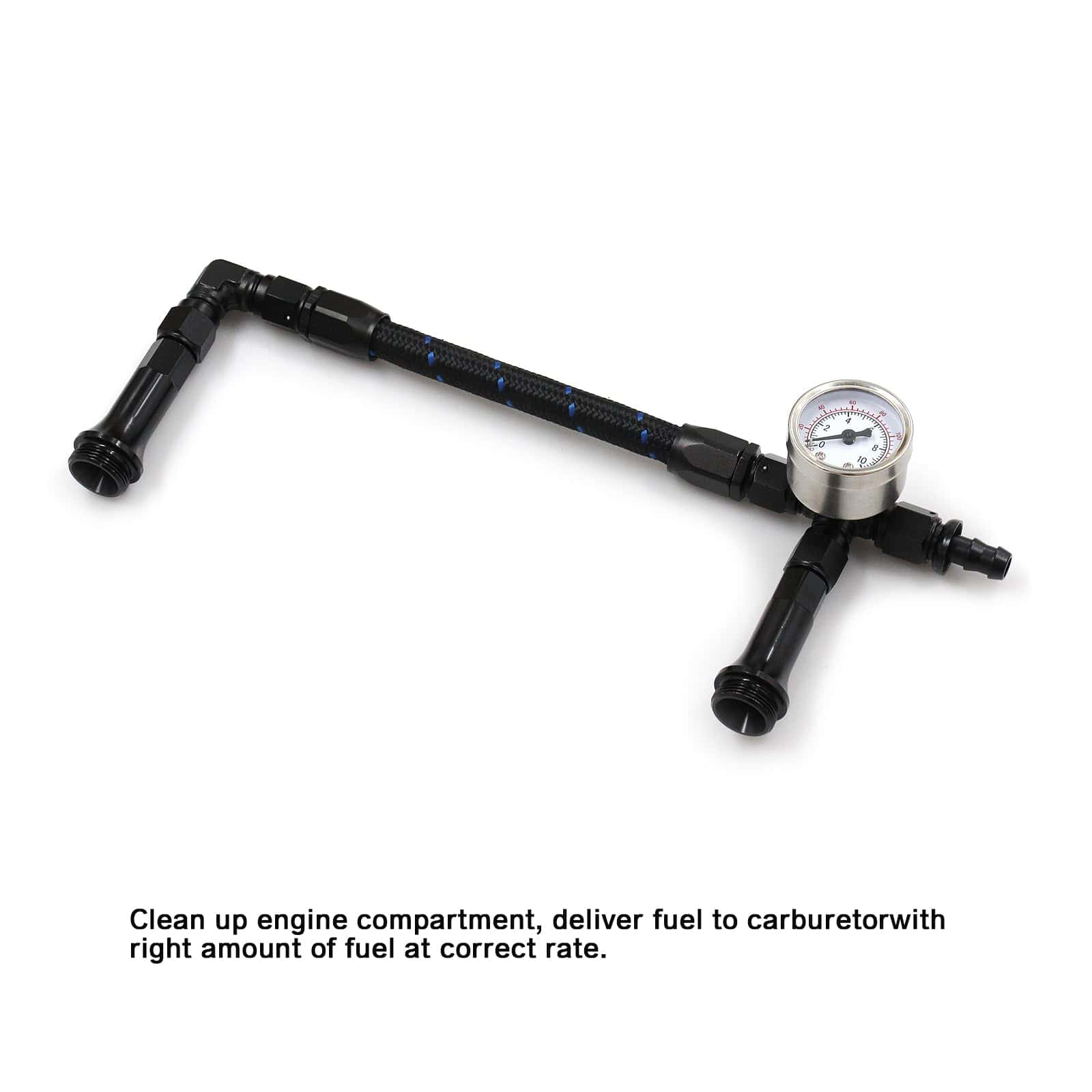 Línea de combustible de carburador doble de AN6 trenzado para Holley 4150 con medidor de presión de vacío es una excelente opción para mantener su sistema de combustible en óptimas condiciones. Este producto está diseñado específicamente para adaptarse a la Serie Holley Dominator 4150 con rosca 7/8″-20. Con un medidor de presión de vacío incorporado, ofrece una estabilidad adicional y elimina cualquier riesgo de fugas de aceite. Los accesorios de alta calidad están fabricados en aleación de aluminio para una durabilidad y resistencia excepcionales. La manguera trenzada de acero inoxidable, caucho y nylon garantiza una larga vida útil y un rendimiento óptimo. La manguera está estéticamente decorada con puntos azules para un aspecto más atractivo. Además, viene con un conector adicional para facilitar su uso y aumentar su versatilidad en diferentes aplicaciones.